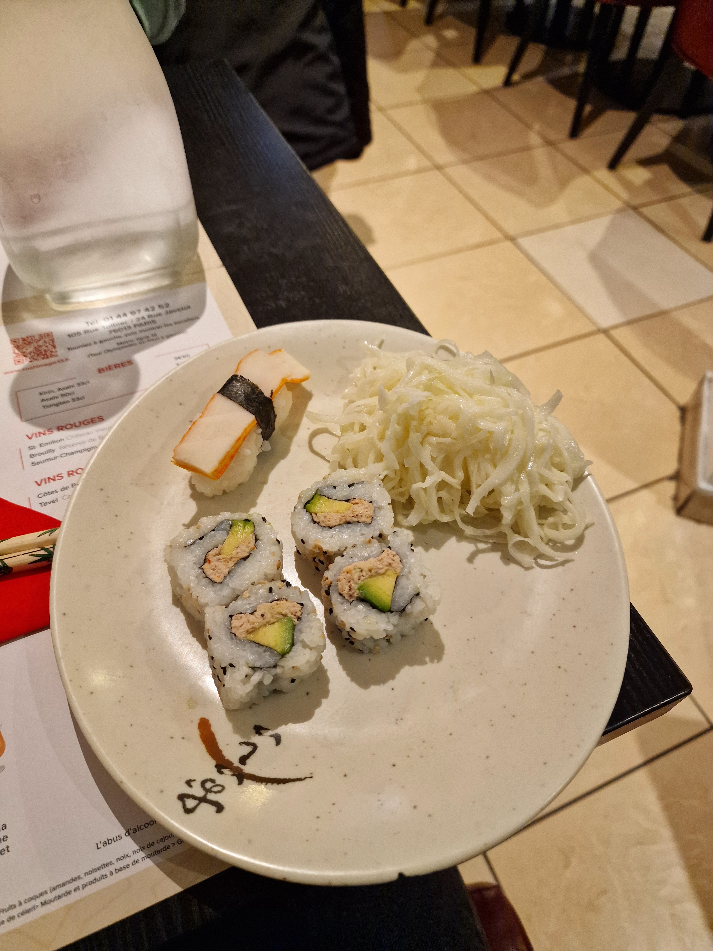 Je déconseille fortement, surtout le week end. Le menu est 16,90€, et ne les vaux absolument pas : les plats sont froids, et très restreints. Les desserts se résument a de la gelée et 3 litchis. Le restaurant est tres mal situé et mal agencé. Je vous conseille plutot de marcher 10min de plus et de vous rendre a Edogawa ou le menu est a seulement 13,90 pour un large choix ainsi des menus chauds et goutûs 😃