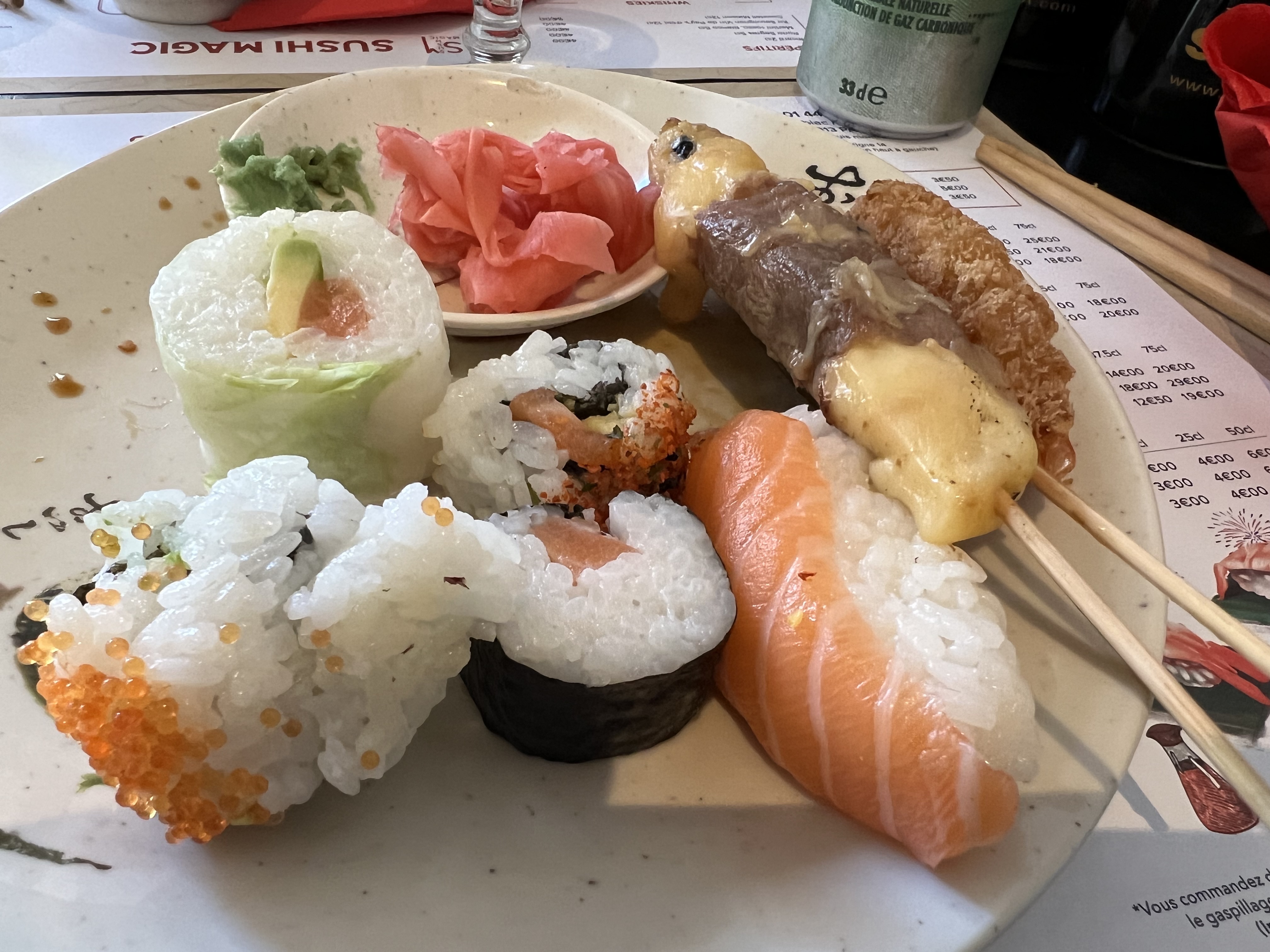 Large choix de sushi, plutôt correct ! Par contre au niveau de la friture ça laisse à désirer. Les brochettes boeuf fromage n'était pas les meilleures de ma vie, mais pour le prix c'est correct