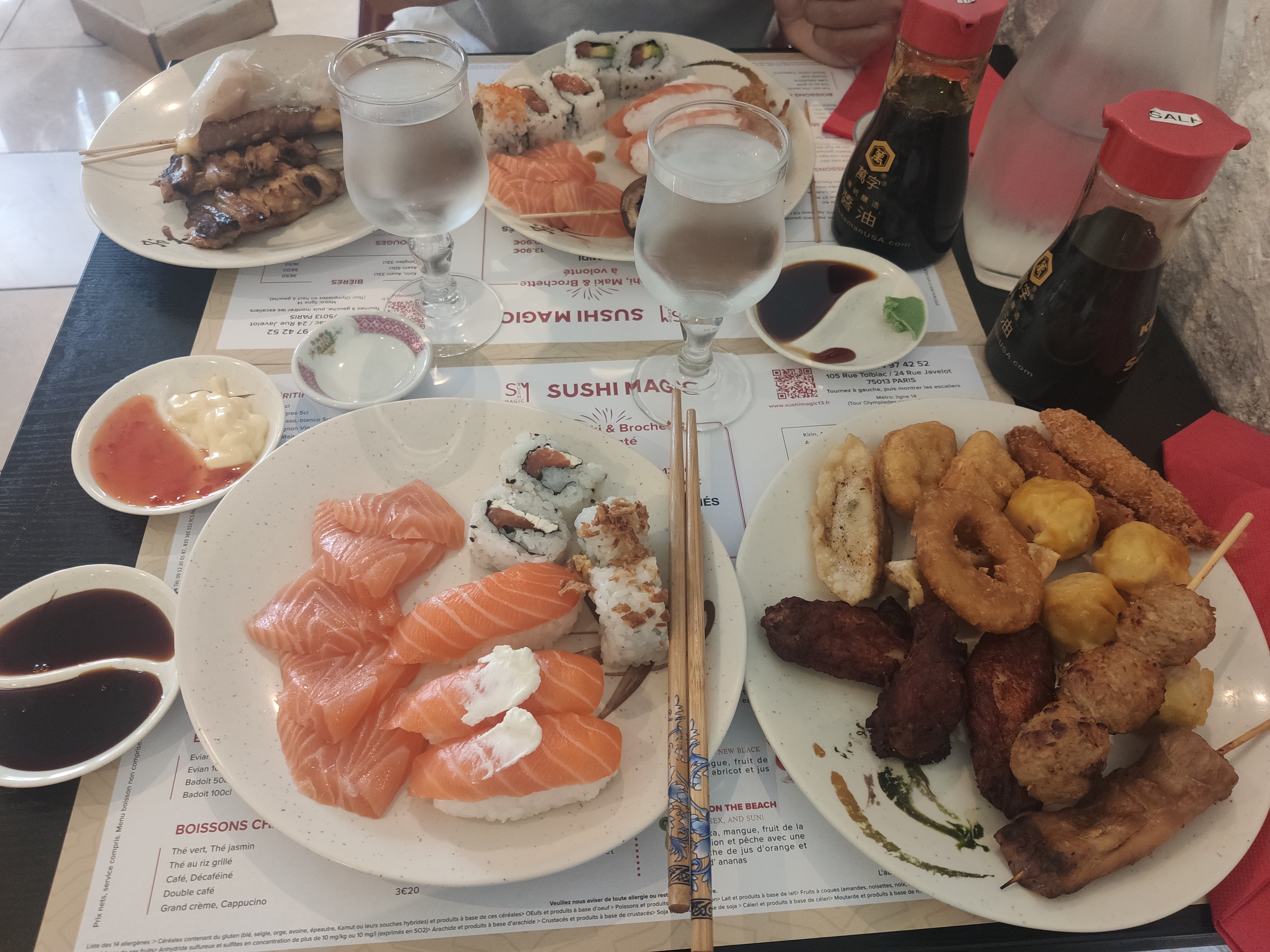 Pas trop cher, sashimis à volonté (atout incroyable). C'est un buffet et il faut soi-même chercher ses mets, ce qui implique qu'on mange à son propre rythme et pas celui imposé par des serveurs. Pas mal de choix côté viandes/brochettes. Il y a aussi des fruits en sirop et des glaces. Petit bémol pour les makis sucrés que je ne trouve pas géniaux. Beaucoup de plaisir à me remplir le ventre ici !