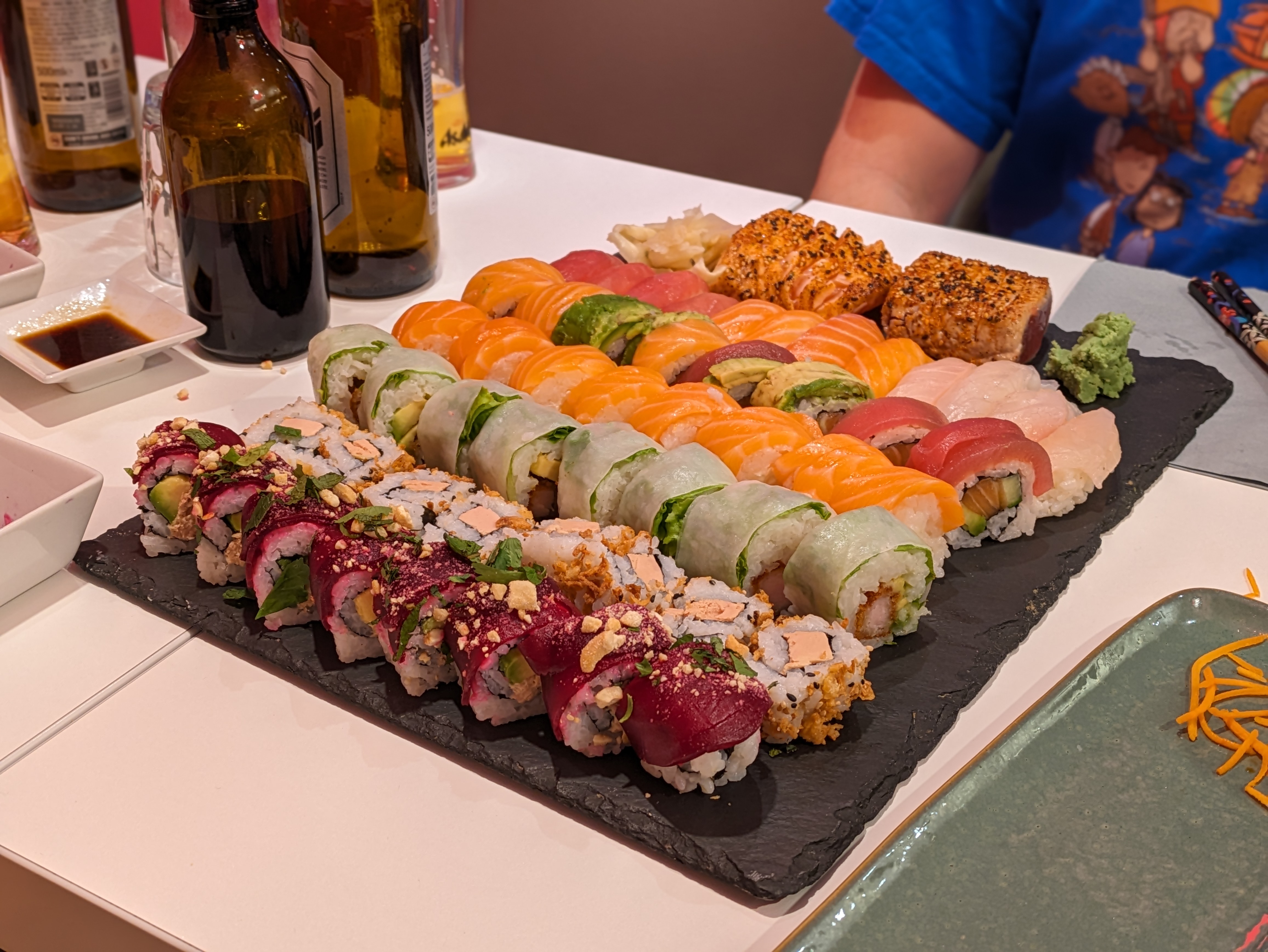 Sushis au top 👌🏼 et généreux. Ma copine n’est pas le poisson cru et l’algue nori. Il y a de belles variantes en sushis. Petit bémol la carte n’a pas changé depuis l’ouverture. Quelques nouveautés ou sushis du moment ou du mois serait le bienvenu.