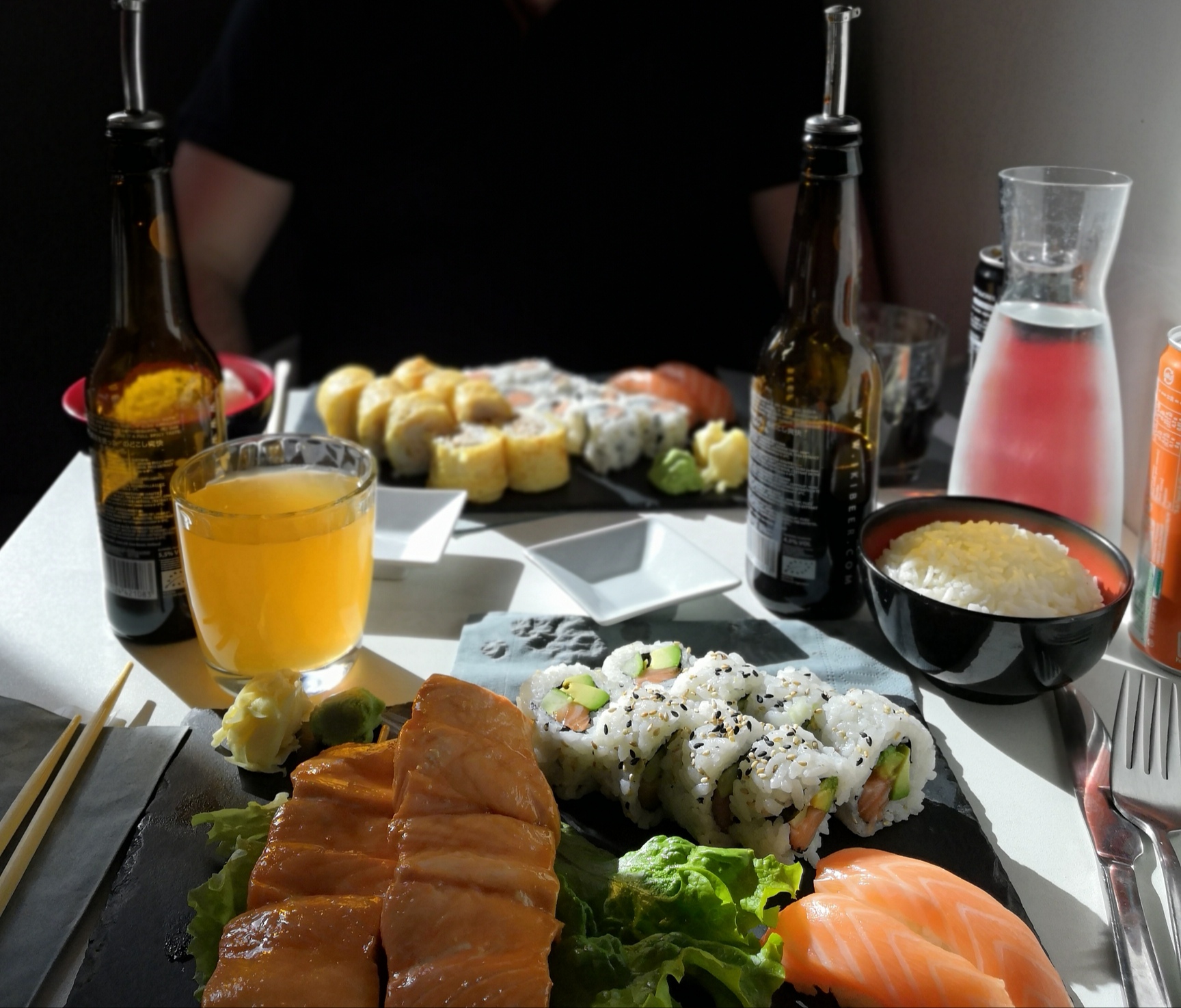 Serveur très accueillant et sympa, sushi super bon et les brochettes boeuf-fromage sont excellentes !! Nous avons pris le plateau california pour 2.