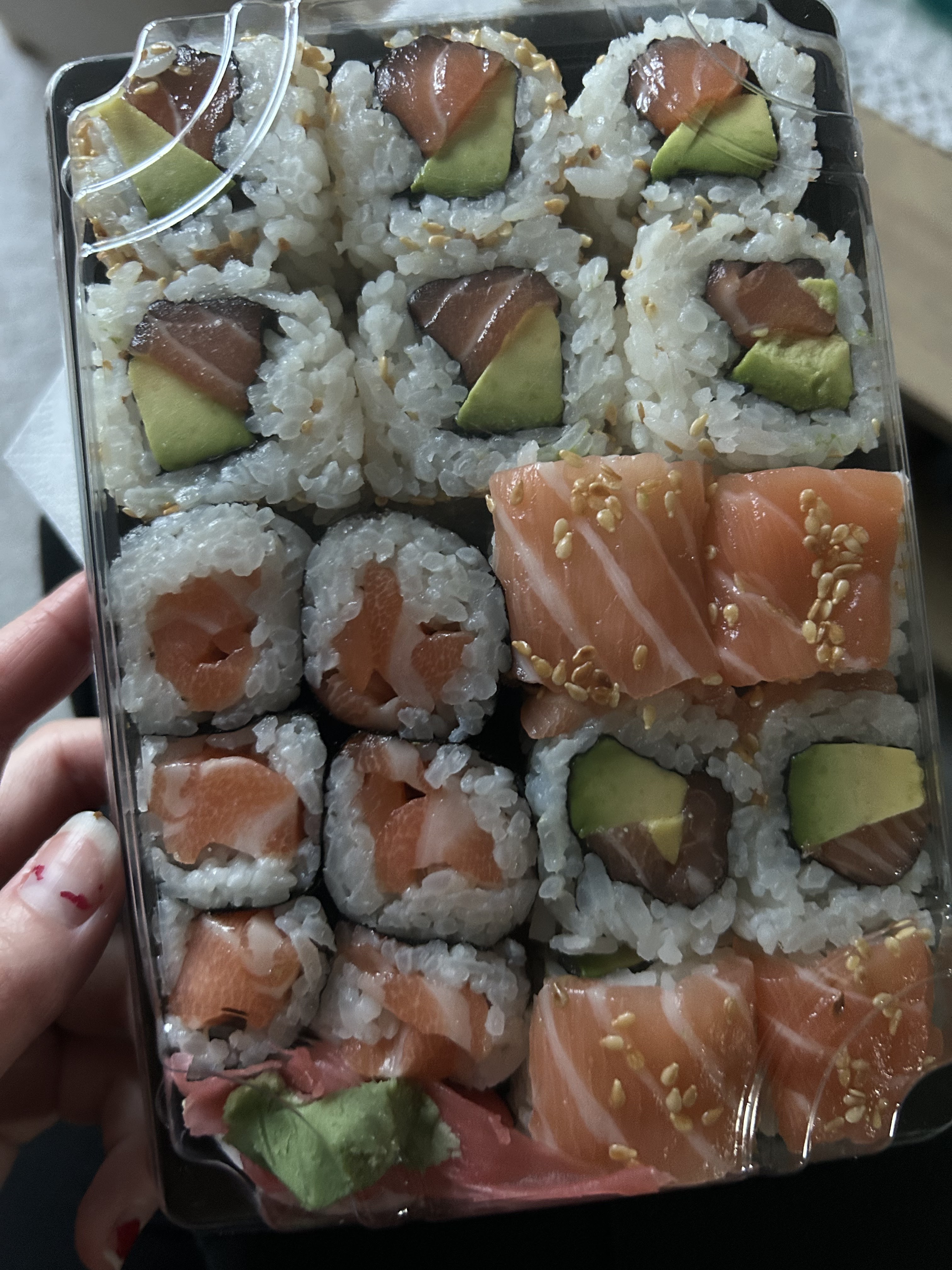 ❤️❤️❤️C'est délicieux!!! Si tu vient l'après-midi y a la queue. Je viens souvent chez eux . Les makis sont 2fois plus gros que les autre restaurant. Et les sashimis aussi. Des nêms sont fait maison. C'est un restaurant japonais avec chinois. Les noilles sauté et les plats chinois sont très bon. J vous conseillés de venir coûter. La patronne est gentille si tu achètes 20+ y aura un cadeau aussi. ^^