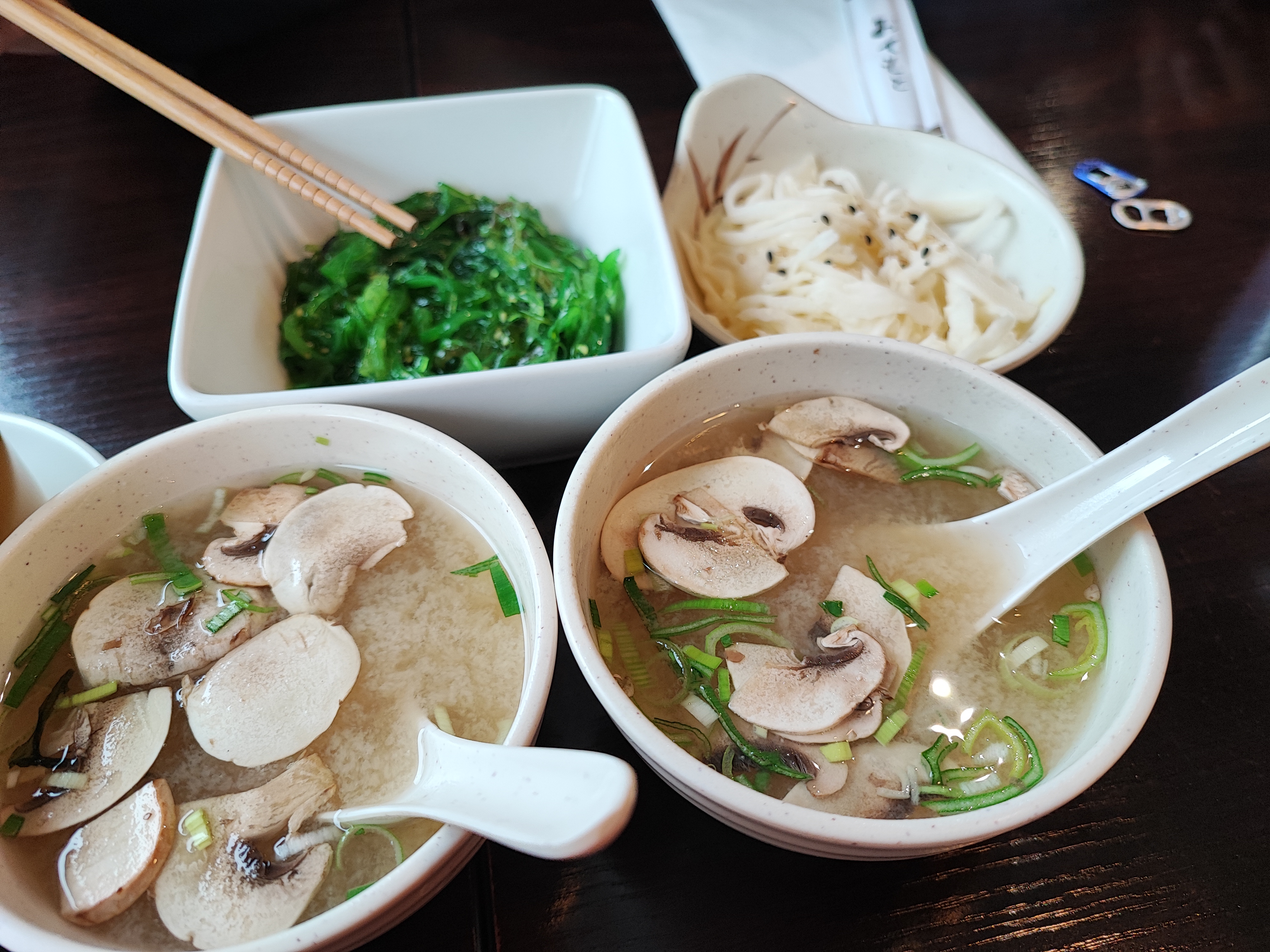 à emporter : le wasabi et le gingembre avaient un goût de moisi (vient peut-être du récipient en papier....) sinon les maki et la soupe miso étaient bons