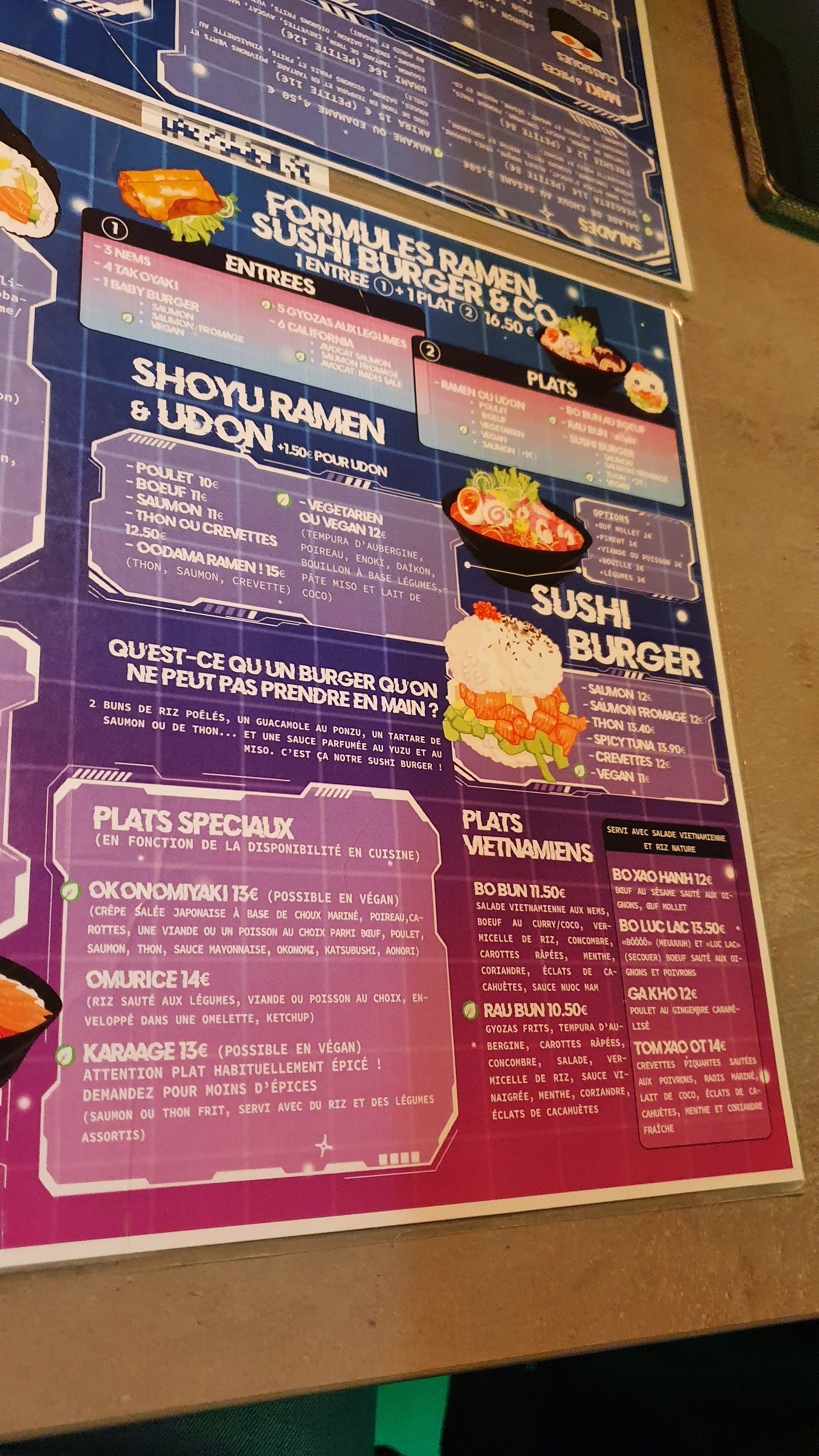 Sushi burger délicieux assaisonné à la perfection, cadre unique avec ses murs peints et son vaisseau spatial ! Et il y a même un jeu d'arcade à disposition pour patienter en s'amusant avant de se régaler .