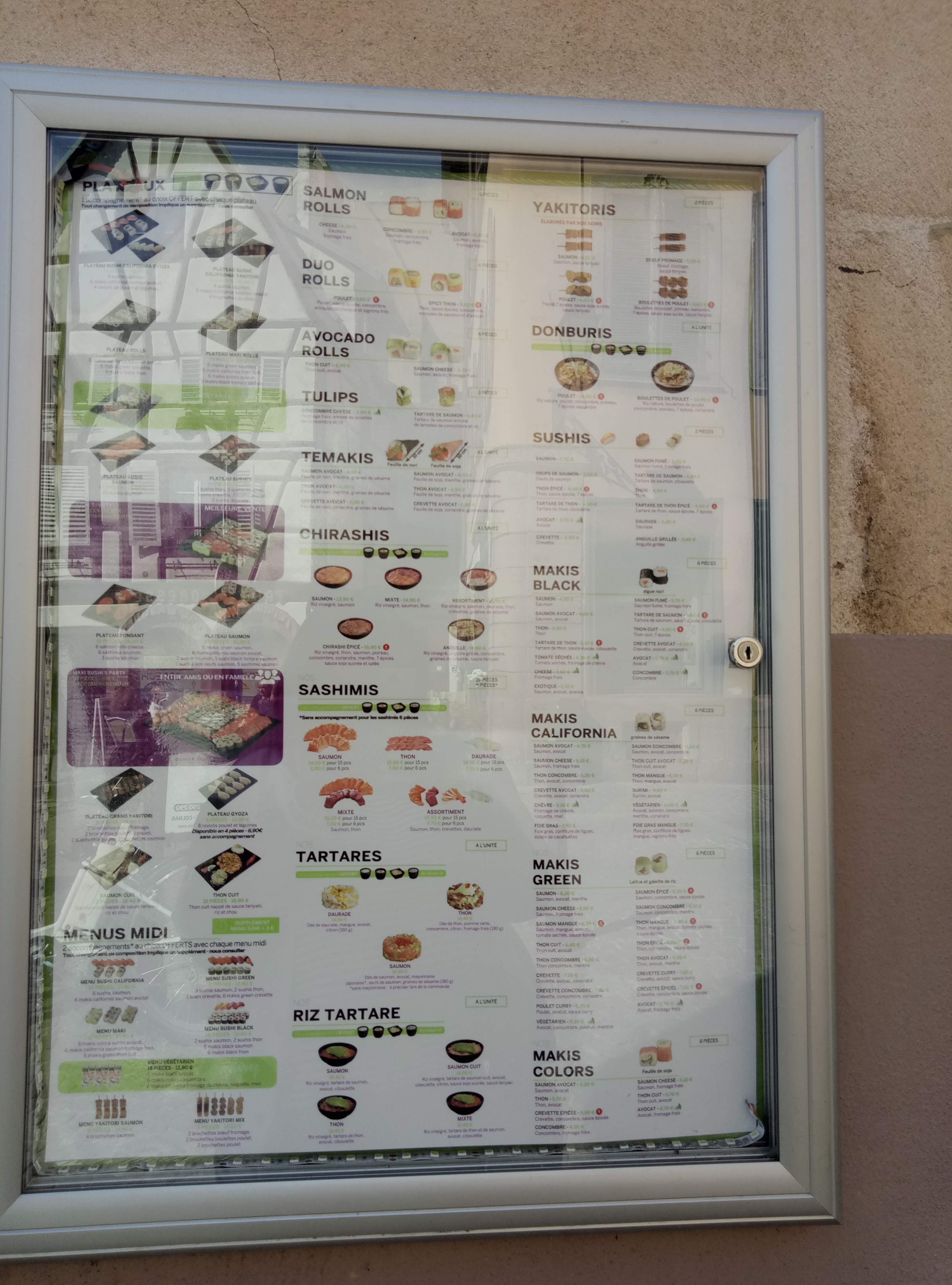 Je ne critiquerai pas vos sushis, que je n'ai pas souhaité gouter.J'étais en train de choisir un menu à emporter, quand une voiture à foncé à toute vitesse dans la rue adjacente. Cela peut paraître anecdotique, mais c'était une voiture de votre restaurant, avec un de vos livreurs. Quand on sait que le centre ville est très fréquenté par des piétons et notamment des familles,, il me semble absolument inconscient de mépriser à ce point les règles de conduite.. Bref. Je suis allée chez votre voisin libanais.