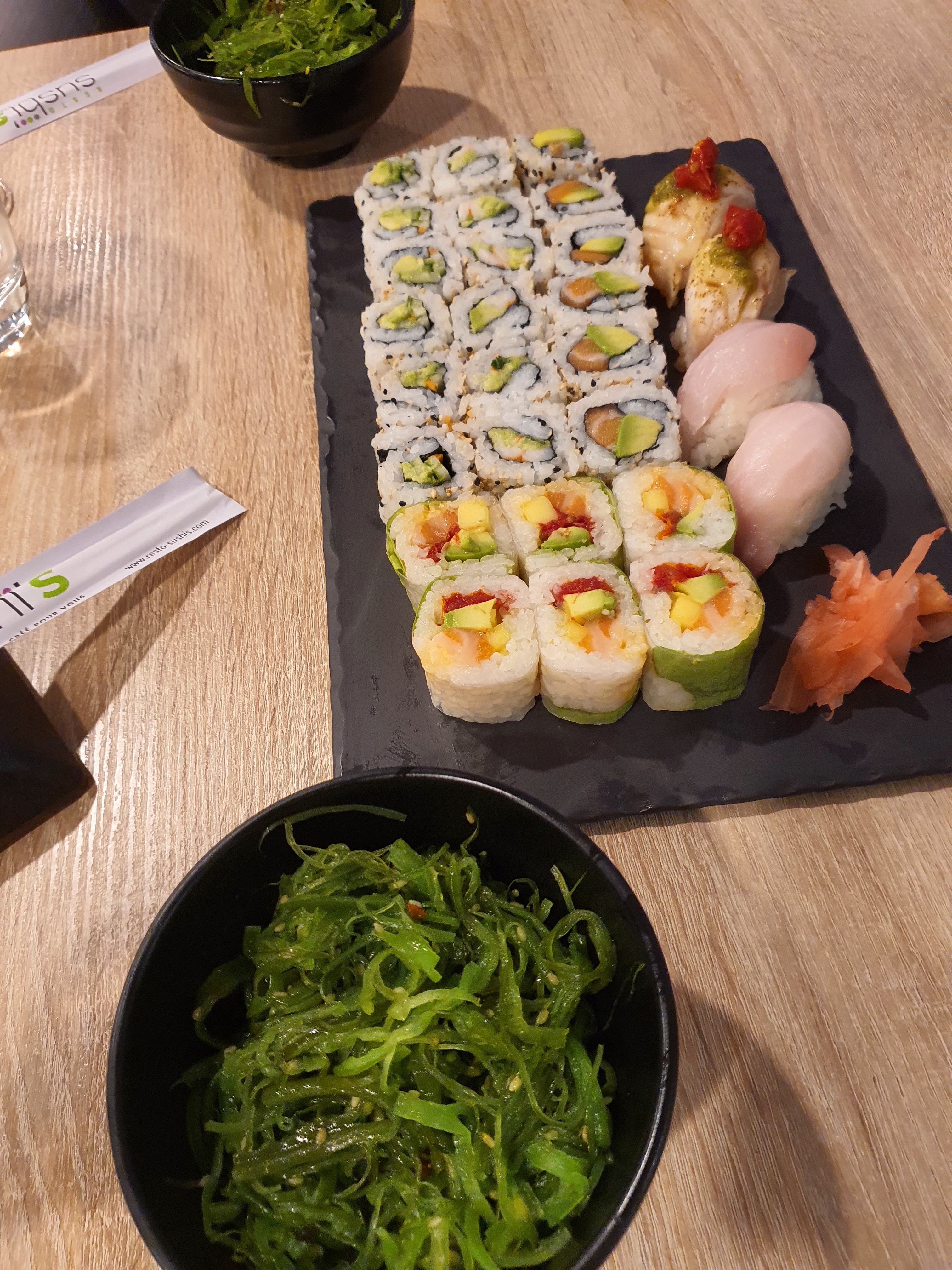 En livraison c'est juste pas possible d'avoir les sauces demandées sur leur site. Et des sushis ou des rolls sans sauce soja, autant passer son chemin. Les produits sont excellents, mais vu le prix, prévoyez un complément autre si vous voulez être rassasié.