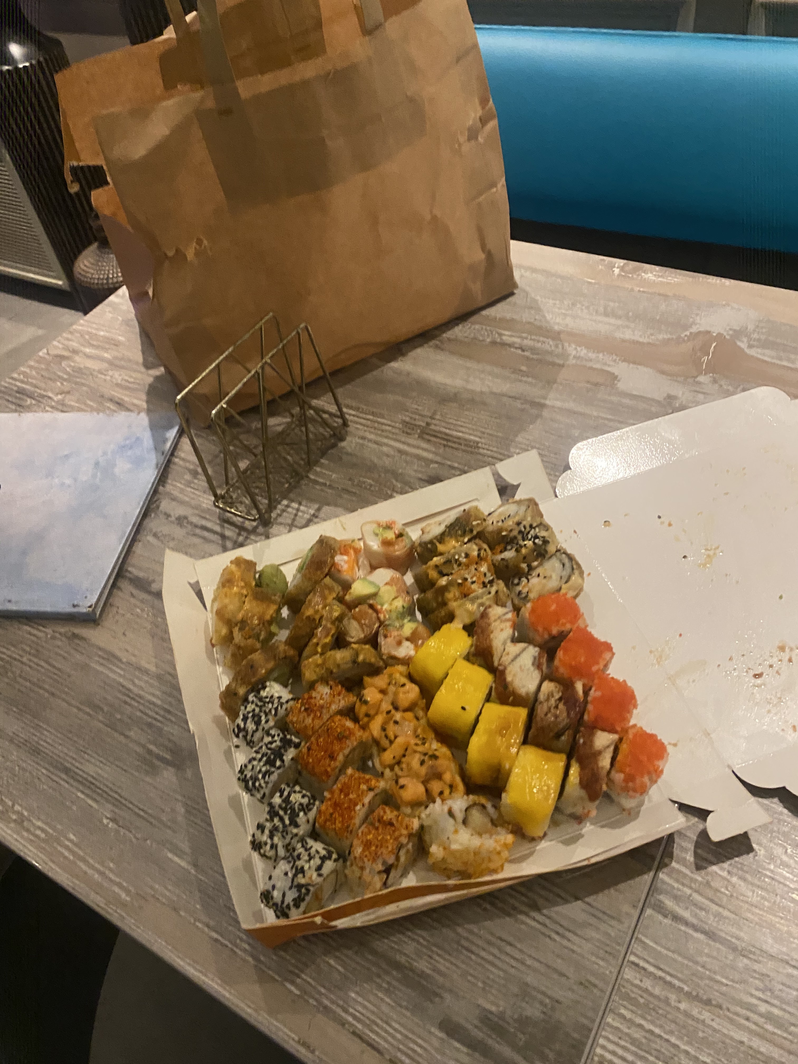 Sushi très bon, très frais, j’ai déjà casiment tout tester et c’est top ! Seul petit bémol, leur sauce sucré qui n’est pas bonne du tout, on dirait plus du caramel qu’autre chose, et ça gâche un peu tout mais ce n’est qu’un détail