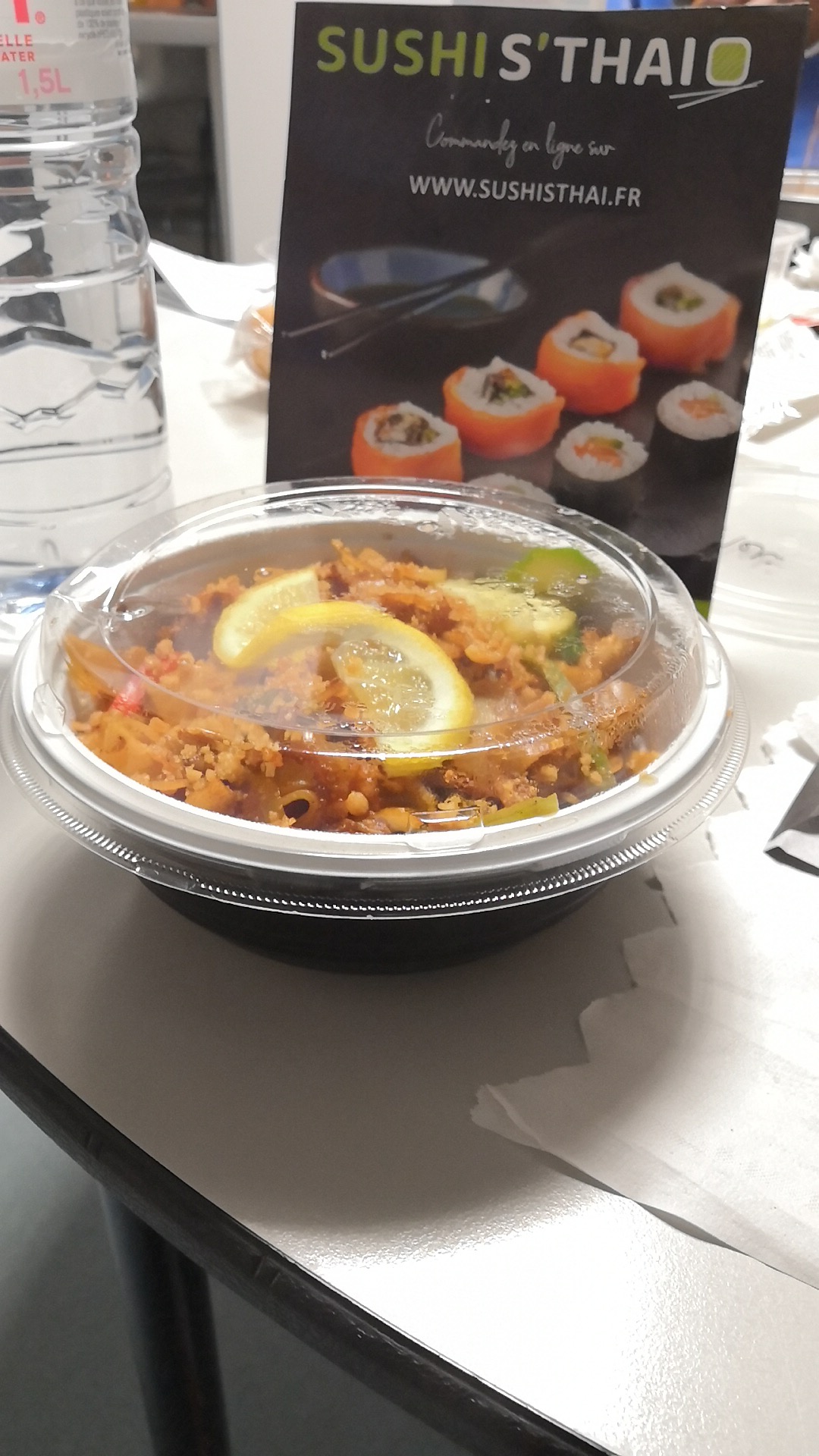 On a commandé deux pad thaï un au saumon et un aux crevettes un délice 😋😋 et avec ça une salade de chou un peu trop sucré l'assaisonnement mais elle reste très bonne le goût est là !👍 Votre enseigne est vraiment une bonne surprise!👍👍 je recommande vivement rapport qualité prix tout à fait correct.
