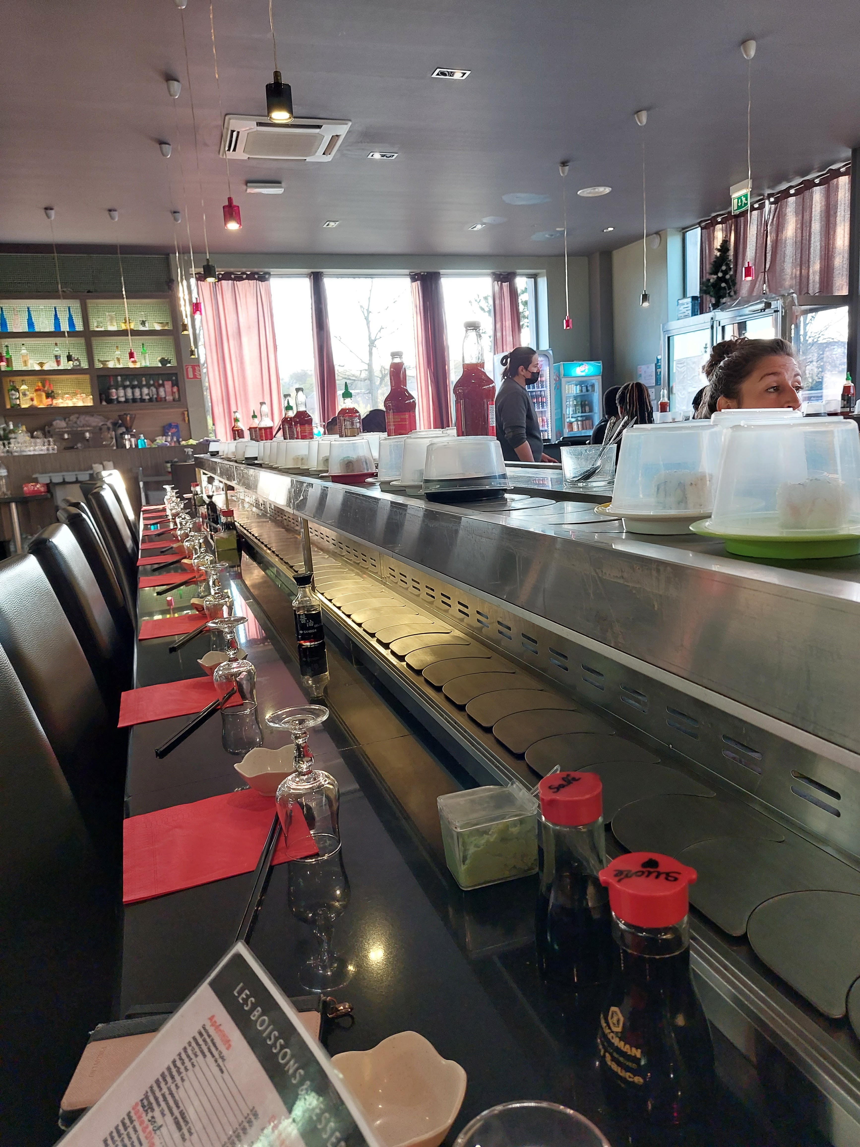 c est très bien à mon passage je me suis régalé et c peu de le dire g bien mangé le personnel vraiment à l écoute et niveau pris c pas chère tu es assis et les plats st sur un tapis qui passe près de toi et tu te sert