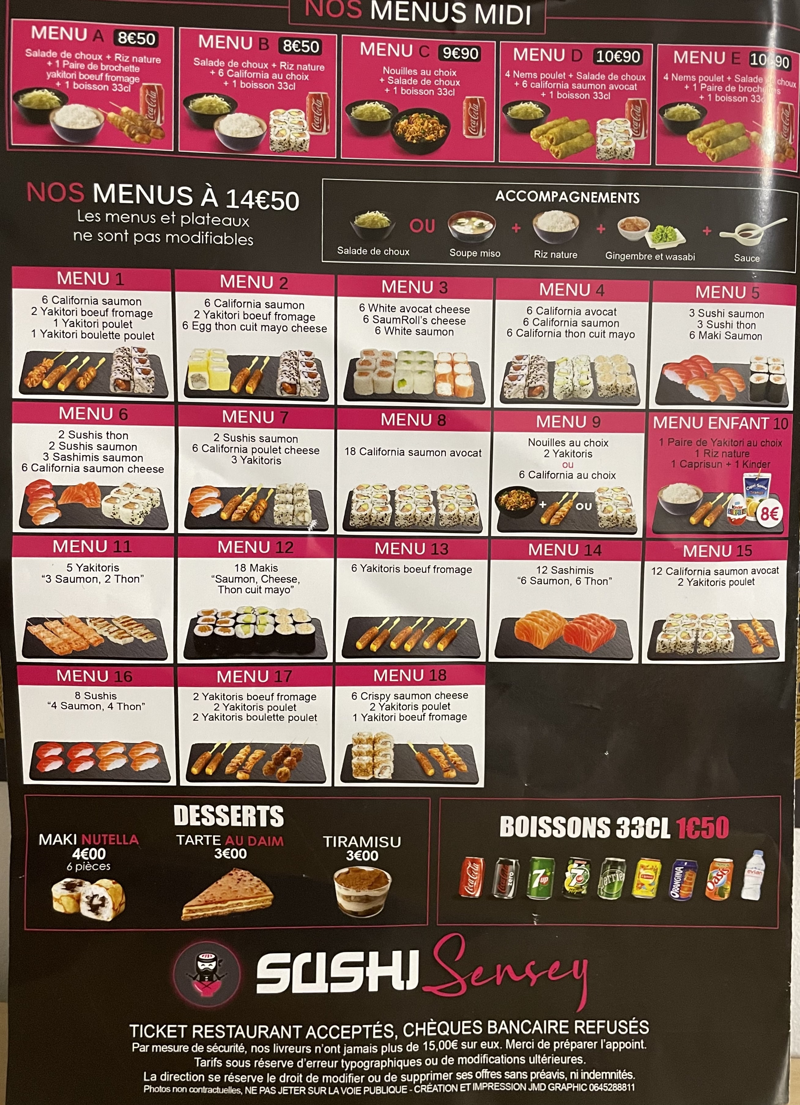 Les meilleurs Maki et repas chaud je recommande sushi sensey 100% Fiable très bonne caliter prix ! A commander 🍣👍