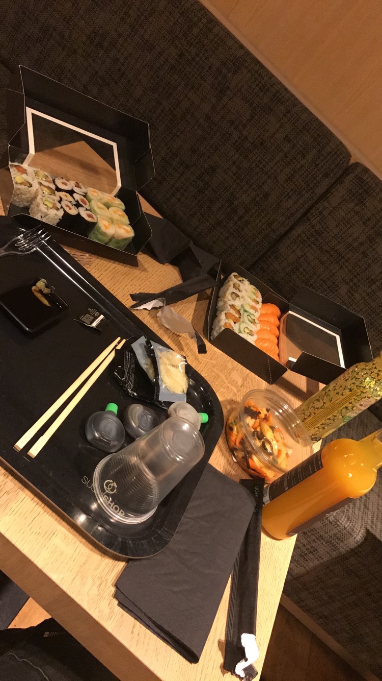 Nous sommes de bons clients Sushi Shop aujourd'hui jour de match on se fait livrer une boxe gourmet. Pour la première fois ... nous voilà malade avec mon compagnon. Une belle intoxication alimentaire 🤢