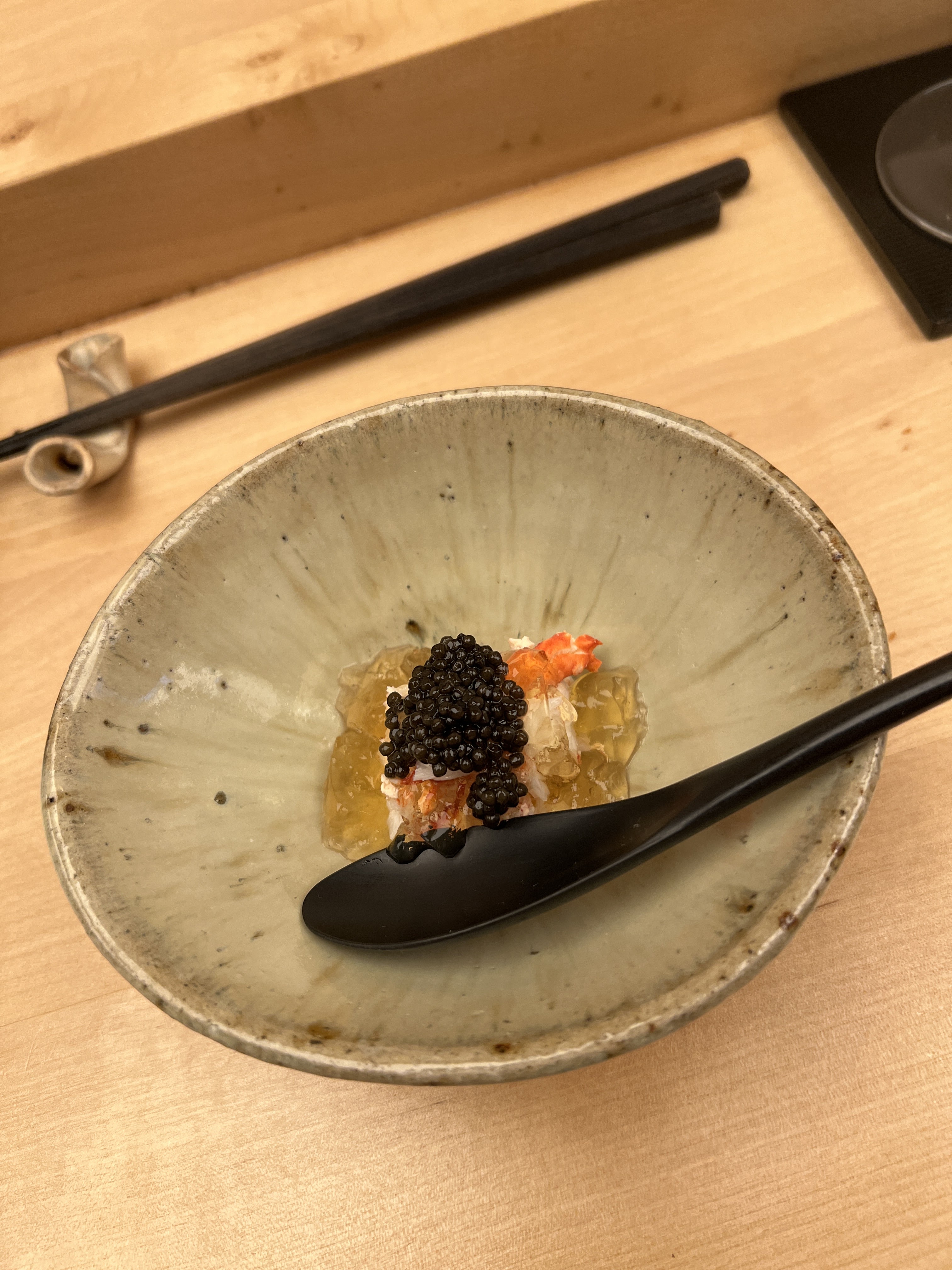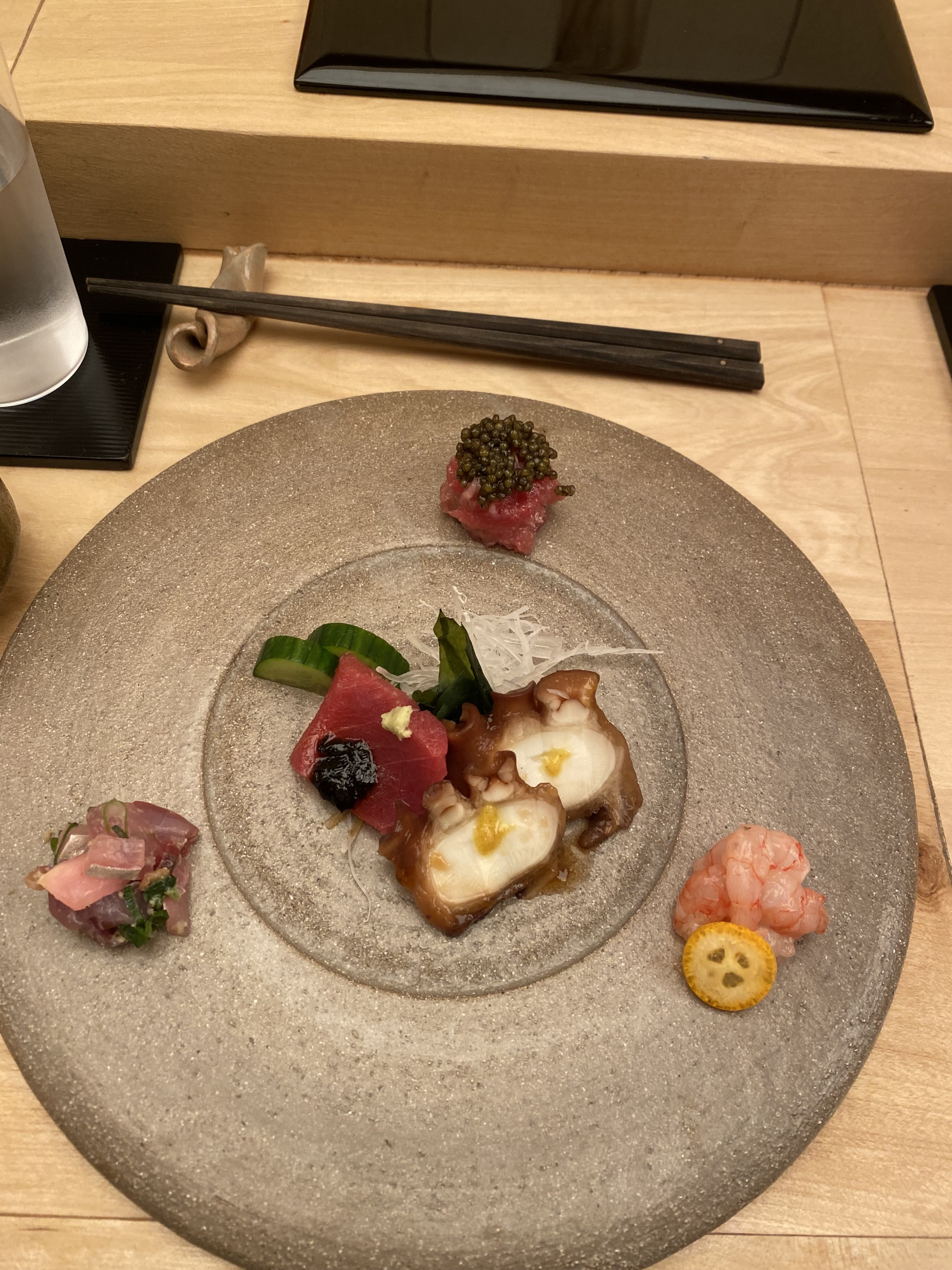 Une expérience sublime qui va crescendo tout au long du menu, immanquable pour tout amateur de sushis à Paris (surtout au comptoir). Mention spéciale aux accords qui permettent notamment d'alterner thés/vin/saké, tous d'excellentes qualité et parfaitement adaptés aux poissons.