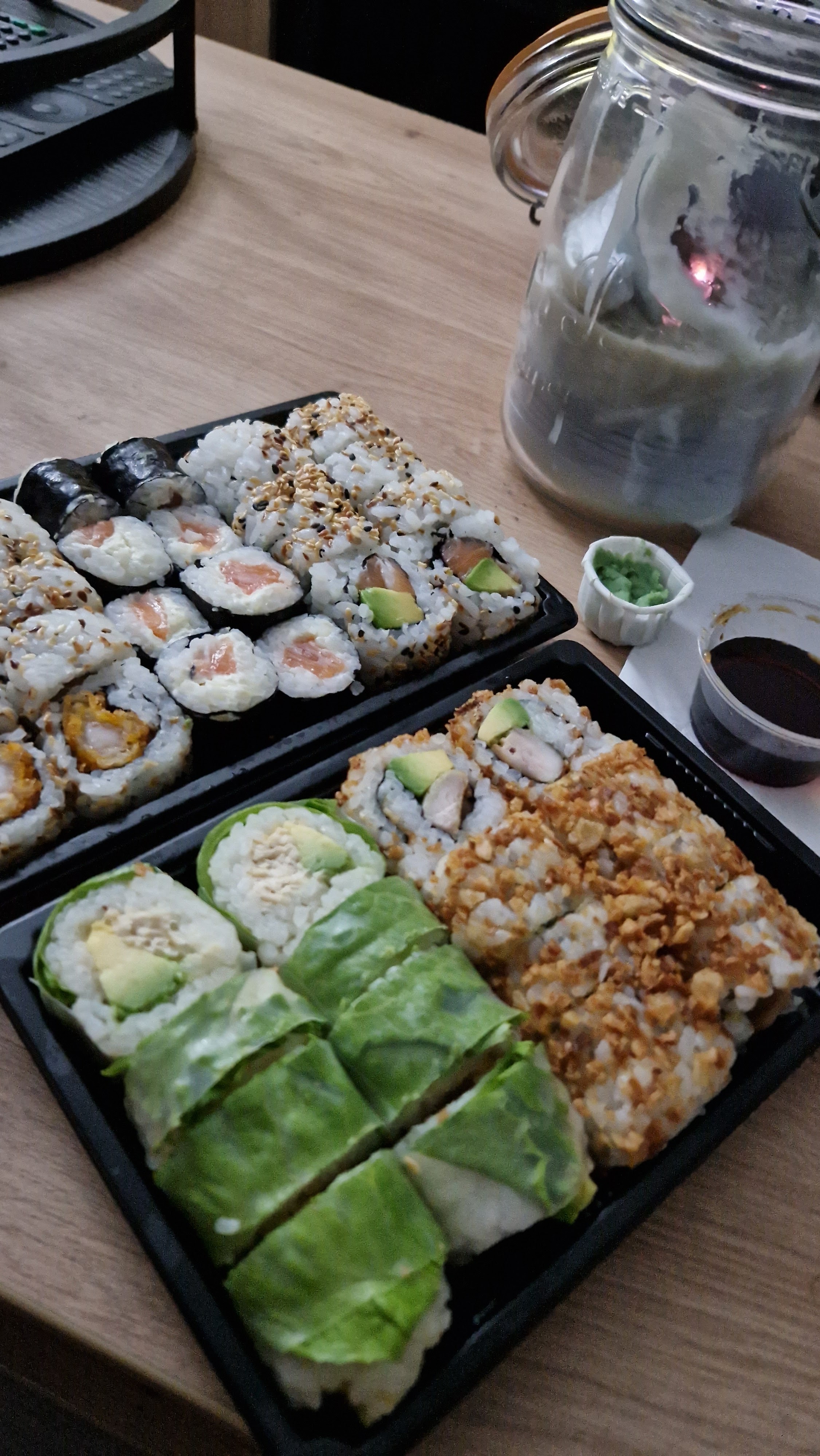 Plateaux copieux, riz parfaitement cuit et tendre, le poisson est frais, tendre et pas trop gras (signe de qualité). Les makis sont réguliers,avec une sauce goûteuse (je pense maison). Vous je regretterez pas, un des meilleurs sushi de ma vie😊
