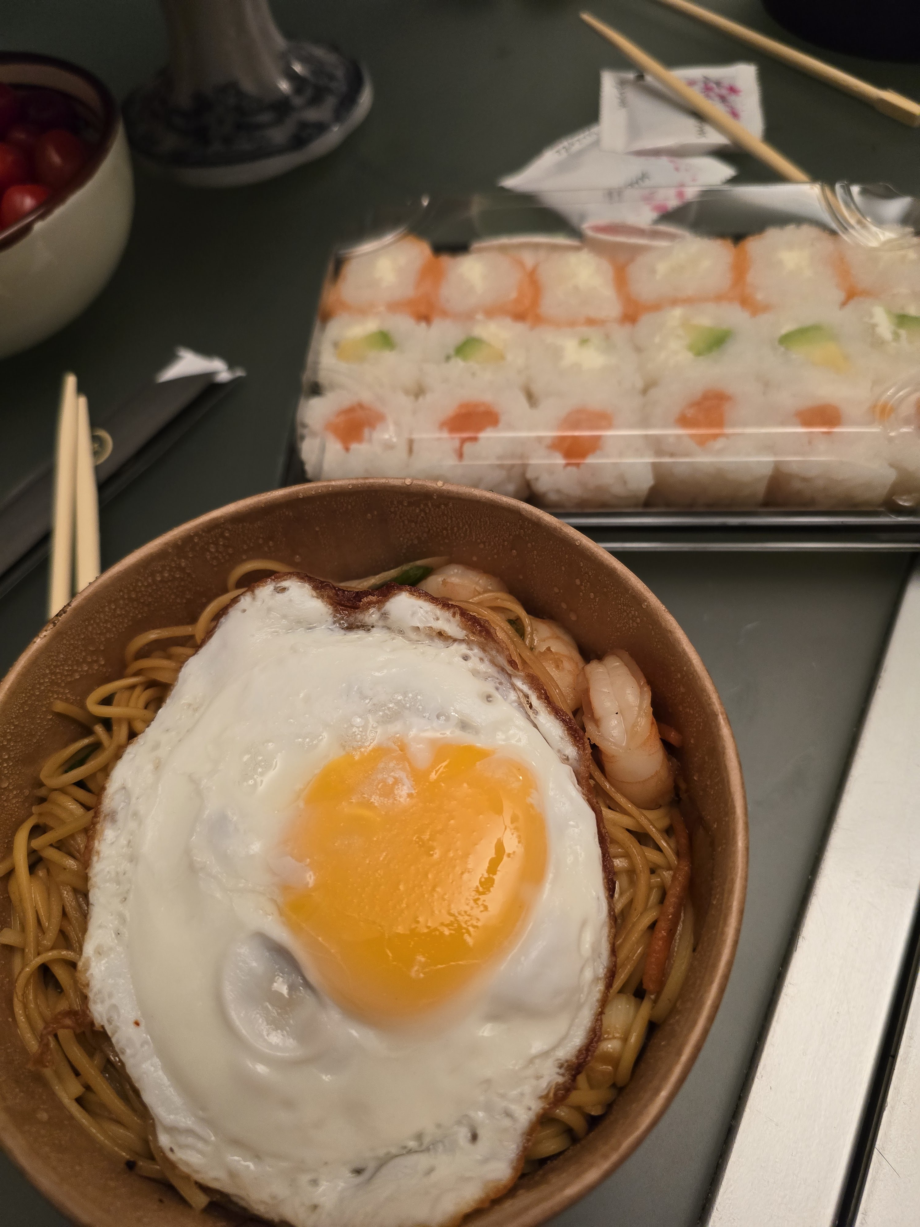 Commande passée via Deliveroo. Plats très bons. J’aurai aimé qu’il y ait plus de sauce sucrée mais tant pis. Livraison très bien. J’ai commandé des nouilles poulets, california saumon avocat et crispy poulet épicé : vraiment très bon.