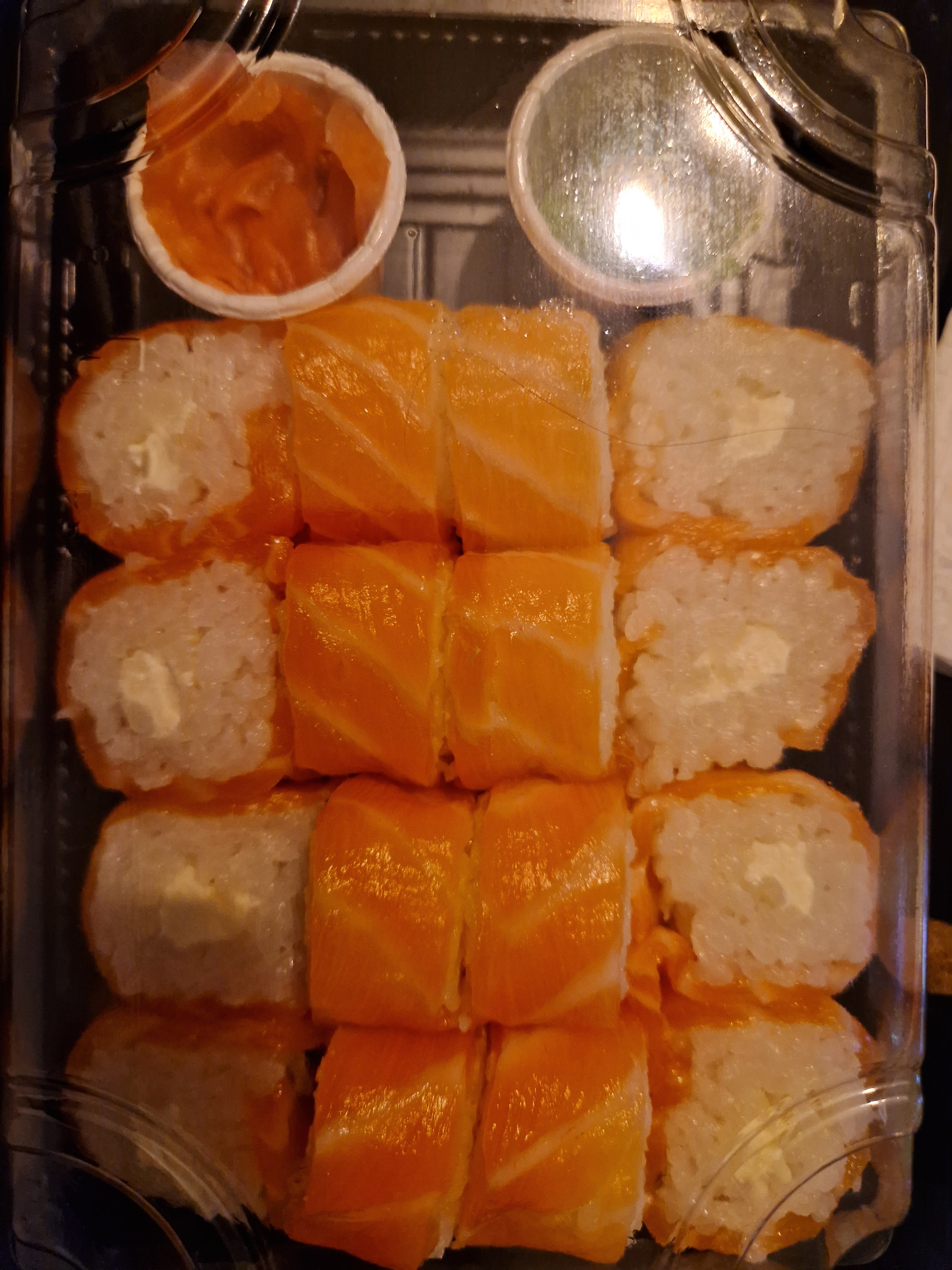 Sashimi et sushi commandés par déliveroo. Mauvais sushi et mauvaise poisson. Mal à la ventre:(