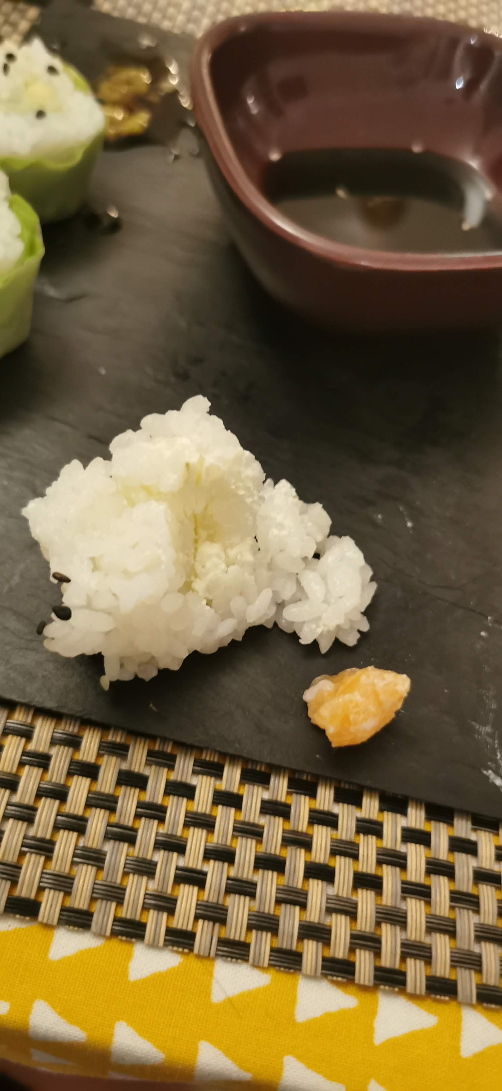 Accueil sympathique en revanche le riz était sec et le saumon n’était pas frais m en plus d’avoir laissé la partie noir proche de la peau ! Je n’ai pas pu manger par peur d’être malade ! Une honte