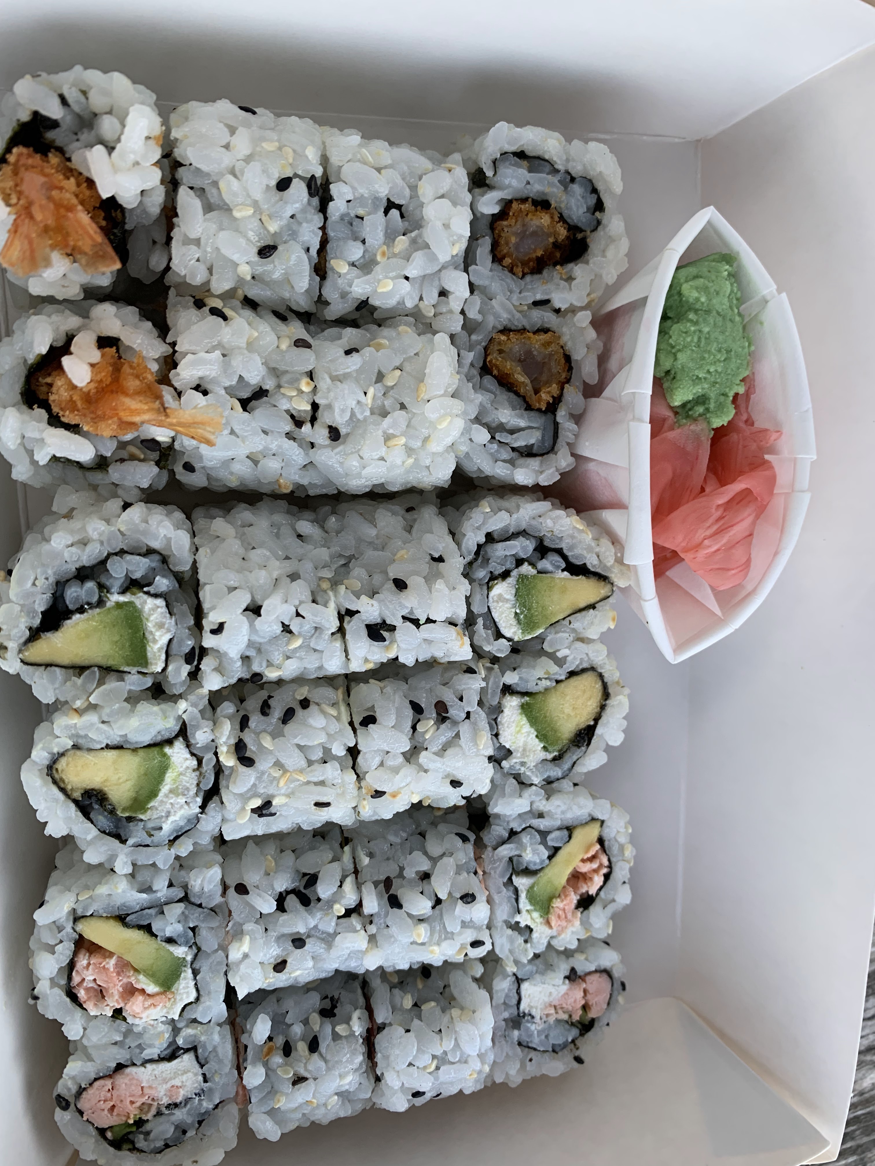 bon, sushi fais sur place a la demande et nous avons pu les emporter pour manger tranquillement devant la télé!