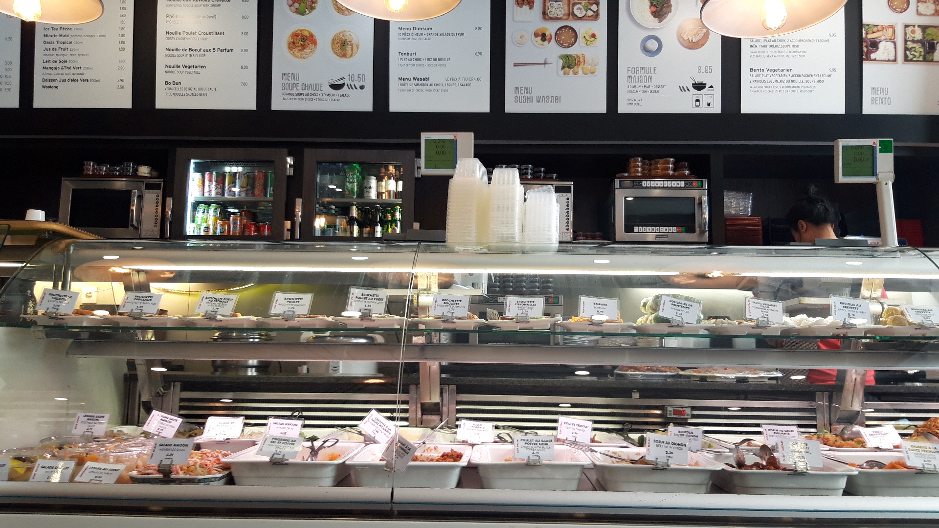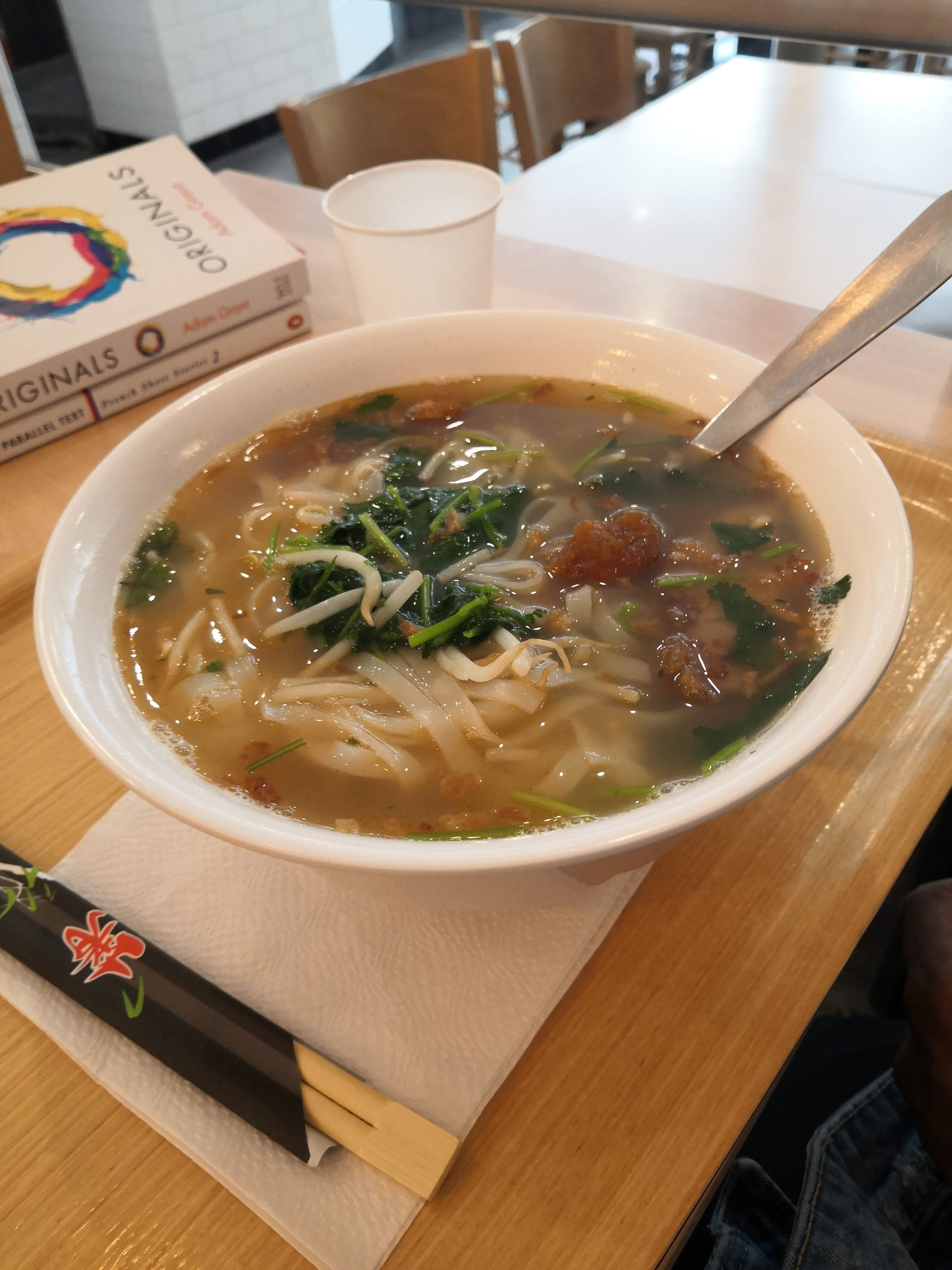 Il s'agit d'une cantine asiatique, mêlant chinois et japonais dans un joyeux foutoir, tout a fait assumé. Ici, on est dans le fast-food, pas génial, mais pas cher. Si vous êtes habitués aux restos asiat du 13e ou du quartier d'opéra, passez votre chemin. Par contre, si vous cherchez un repas rapide qui change un peu des burgers ou des paninis, pourquoi ne pas essayer un bobun ou un plat de raviolis vapeurs ?