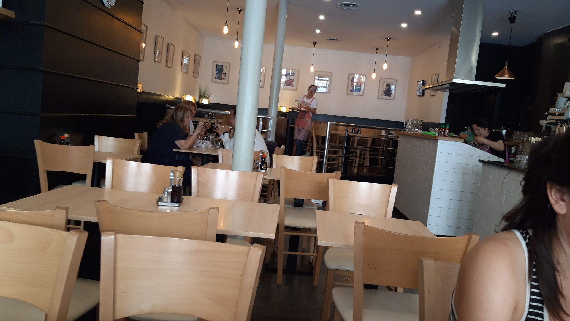 La qualité des plats et bonne, le prix raisonnable, le service rapide. Par contre, le personnel n'est pas très bavard, et pas super de façon générale. On commande un peu sous pression, on paye rapidement, personne nous dit que nos plats sont prêts, ni où les récupérer. On demande une carafe d'eau, la serveuse nous demande de chercher une table qui vient de se libérer et d'en prendre la carafe d'eau. Il y a beaucoup de choses à améliorer au niveau du service.