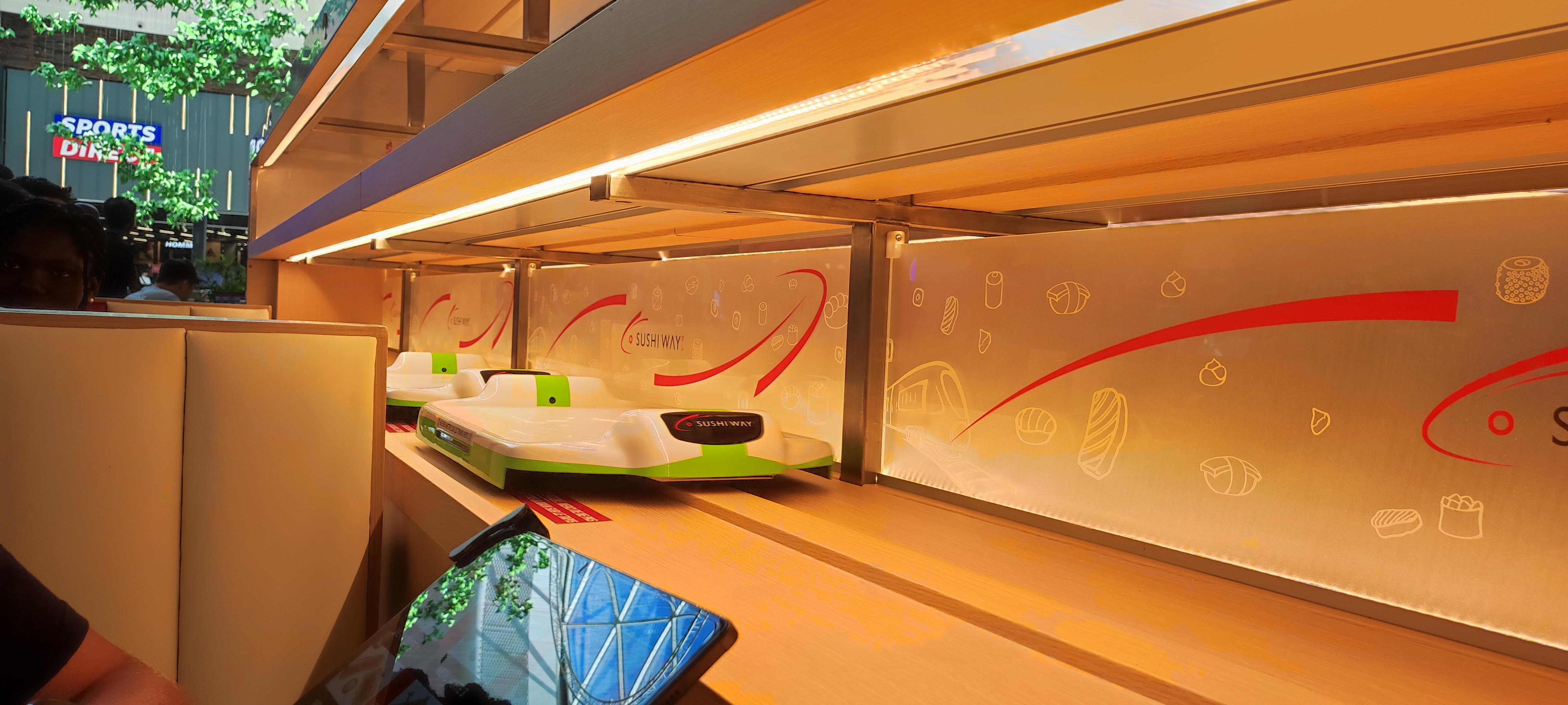 Nouveau restaurant sushi Way dans le centre commercial Aeroville. Le concept est sympathique et se rapproche de ce qu'il y a au Japon Pour ce qui est du cadre, il y a pas énormément de place mais le lieu est plutôt calme et reposant pour manger Le menu est top, il y a du choix et je trouve la qualité plutôt correcte Peut être un peu cher malheureusement mais ce sont sûrement les prix partout. Mon passage m'a fait plaisir et je pense revenir si je suis de passage dans le coin