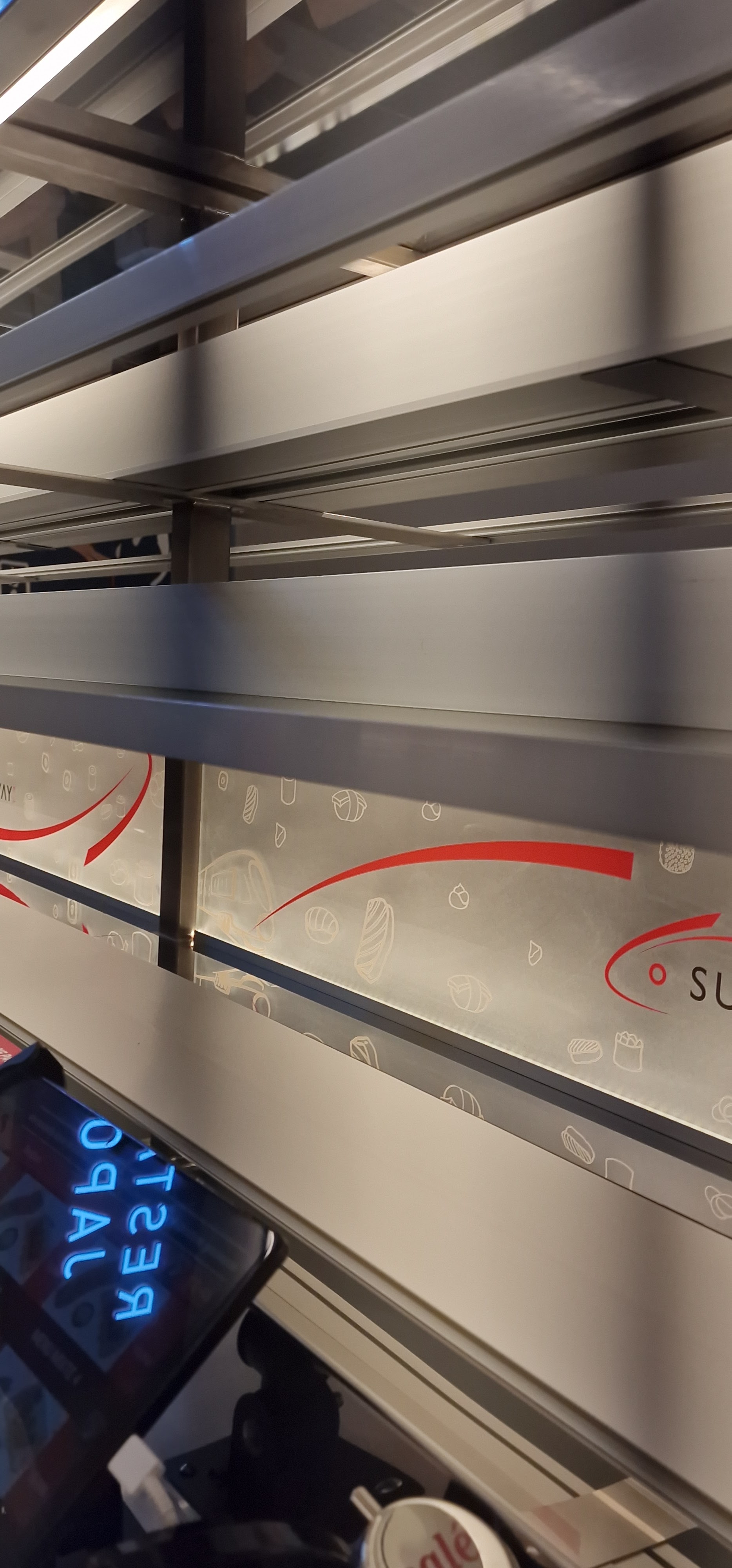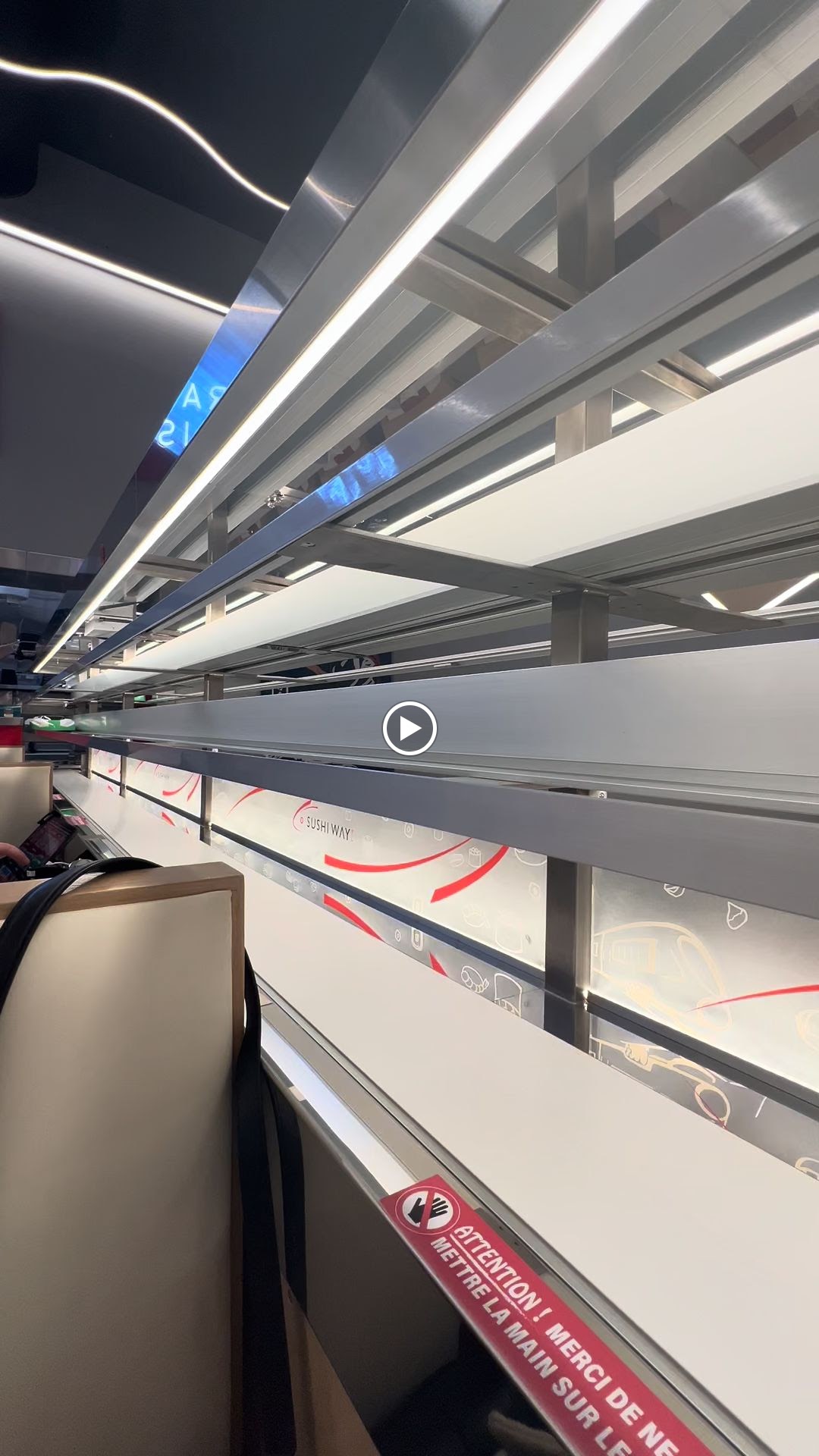 Restaurant futuriste, j’adore les petits trains qui ramènent les plat devant moi, les nourritures sont ultra froides fraîches, personnel adorable ! Bravo !