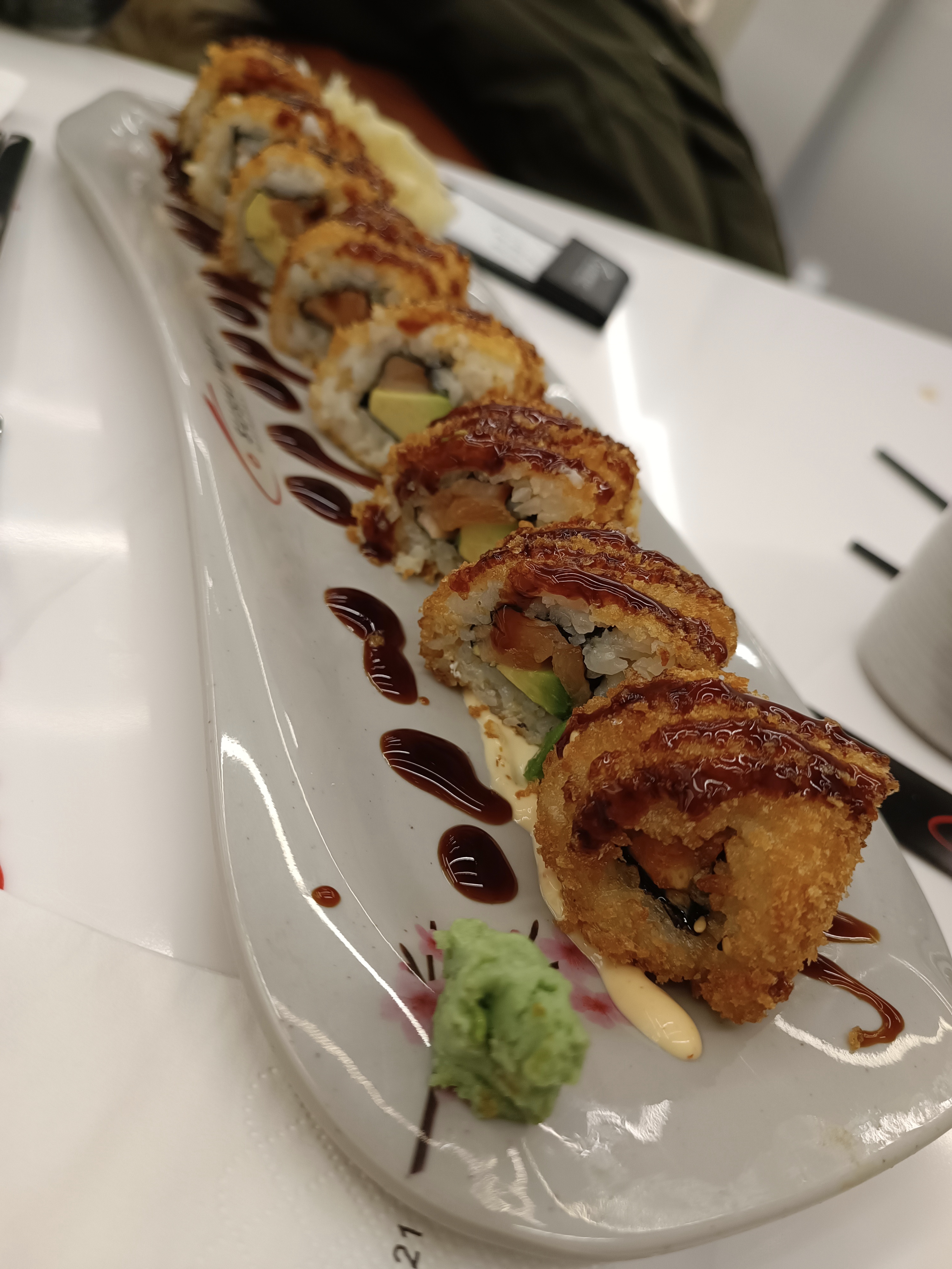 Les sushis sont bons mais le personnel est très antipathique car ils ne sont pas gentils du tout. J'ai demandé des bâtonnets de sushi pour ma petite fille et ils ont refusé car ils ne la comptent pas, je veux dire que le minimum que vous puissiez faire est d'être gentil avec les enfants à la place, ils ont choisi de se moquer de la demande, ils sont très grossiers en général, ils continuent de compter les gens sur chaque table et les commandes. Si triste! J'y réfléchirais cent fois avant d'y retourner.