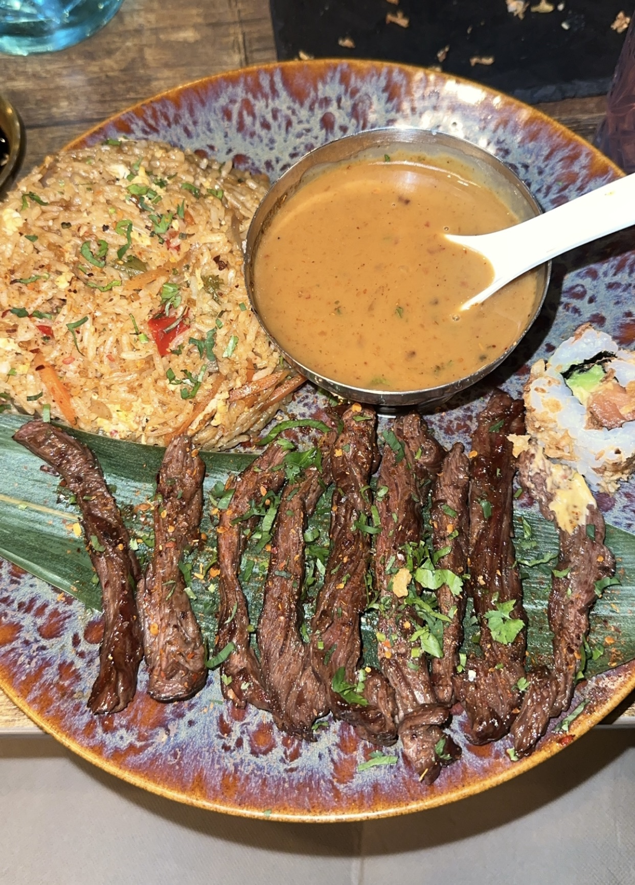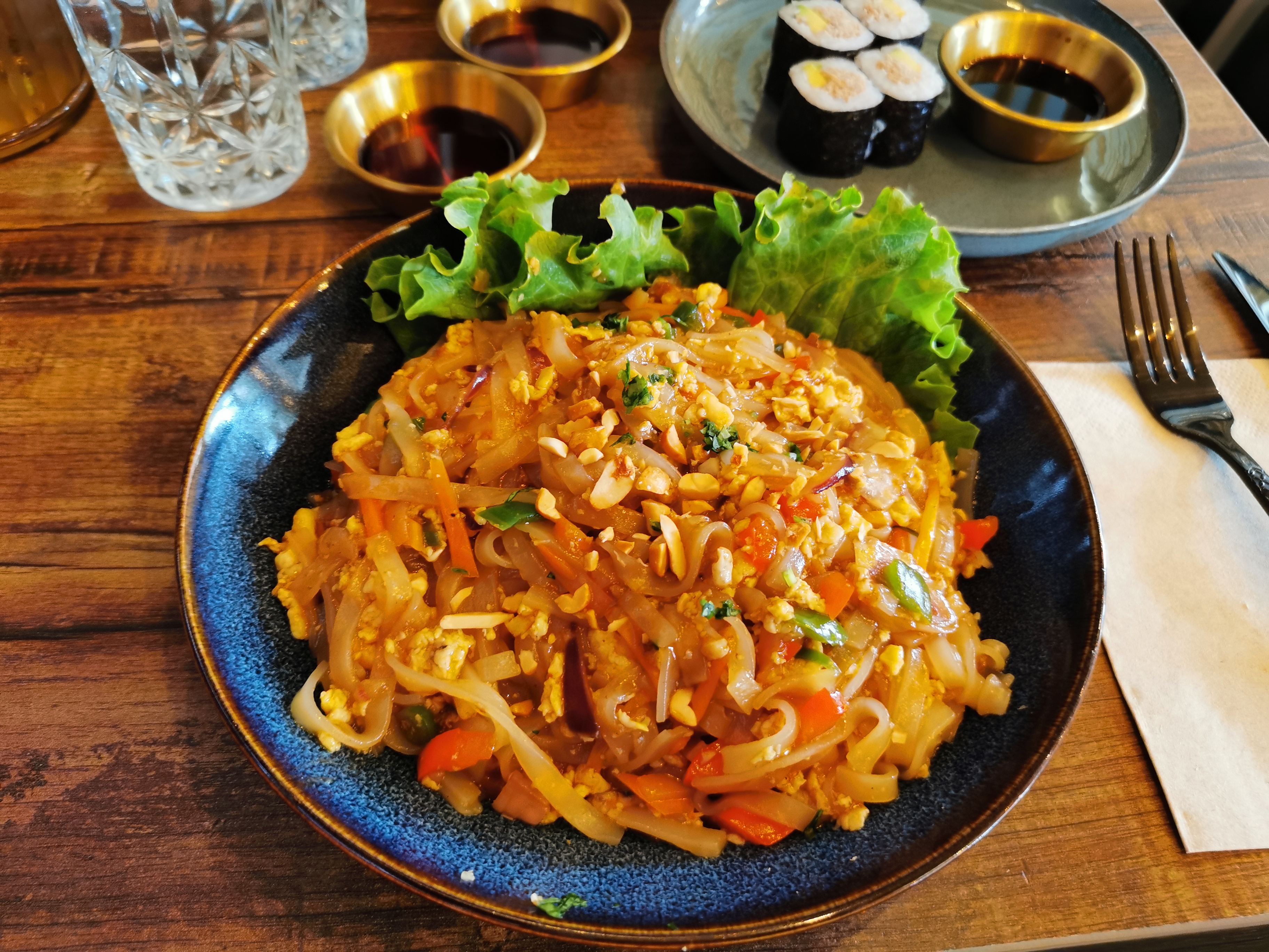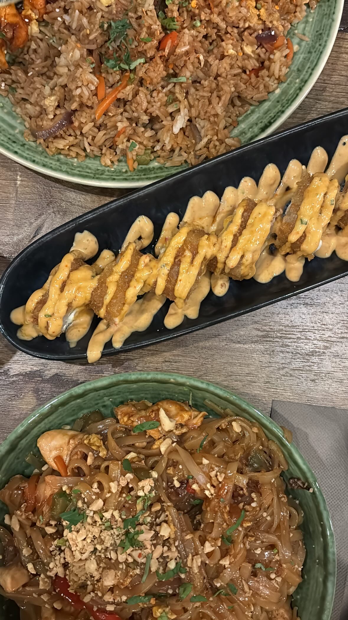 Étant un adepte des restaurants thaï et japonais.. Tout était parfait et fait maison : les brochettes, les sushis signatures, le plat thaï et même le dessert (tiramisu à la pistache fait maison). Le service était top et les assiettes ont été servies en moins de 5 min ! Un des meilleurs en région parisienne 👍