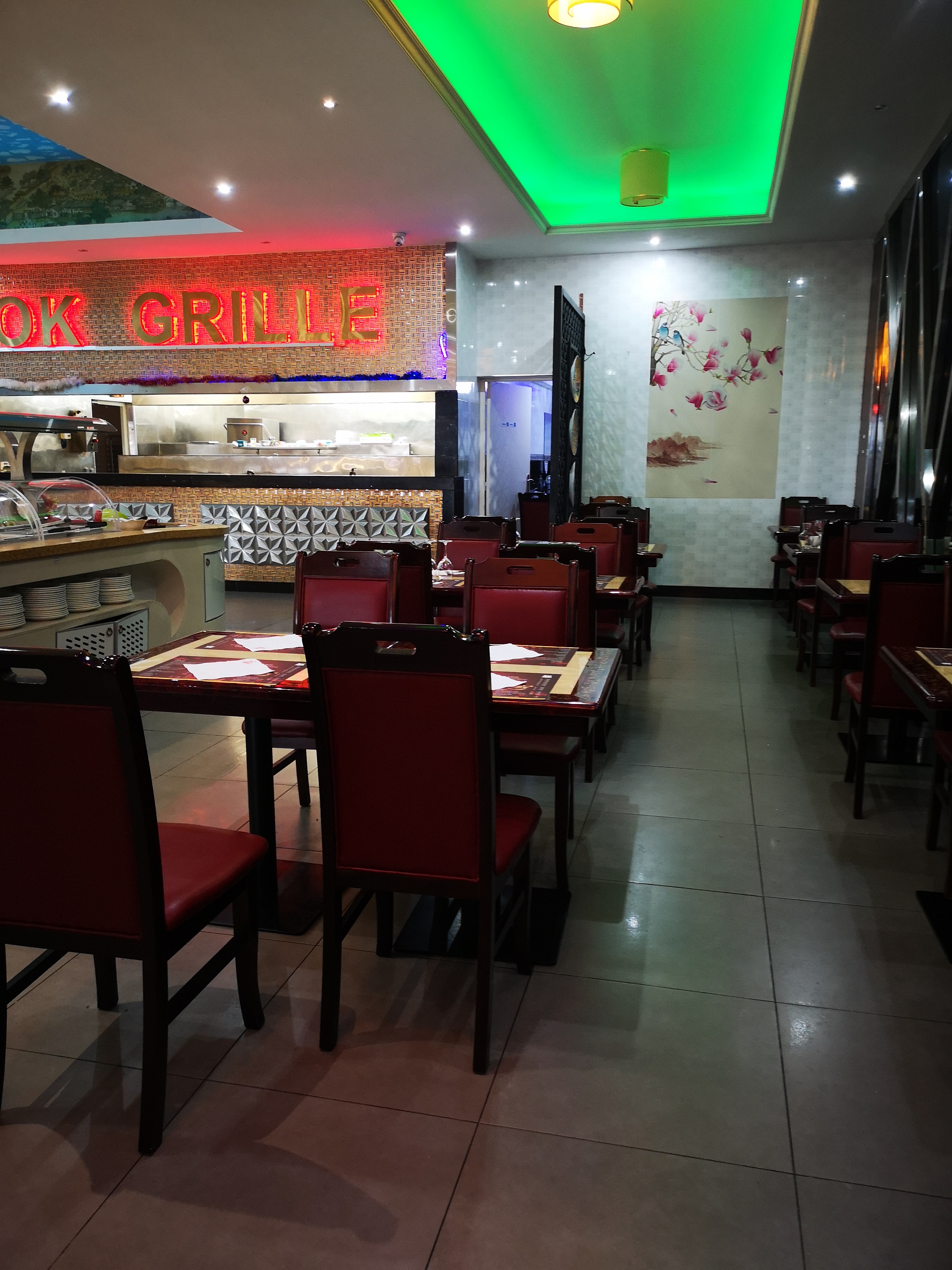 Grande salle bruyante. Tables très rapprochées, ce qui est assez gênant pour un resto buffet à volonté. La propreté sol et toilettes laissent à désirer surtout en deuxième moitié de service. On a l'impression que le personnel est vite débordé. Sinon les plats sont bons et variés.