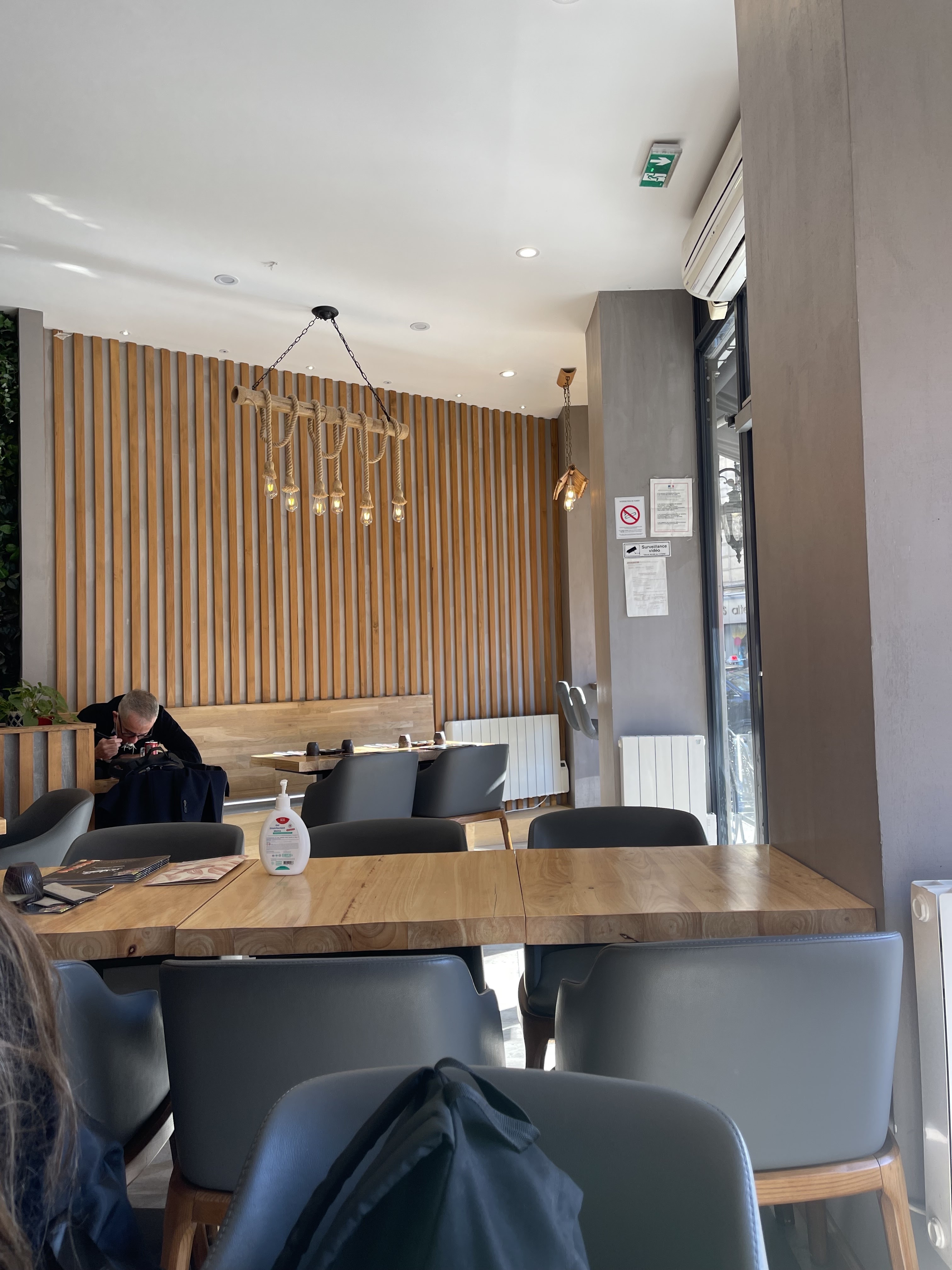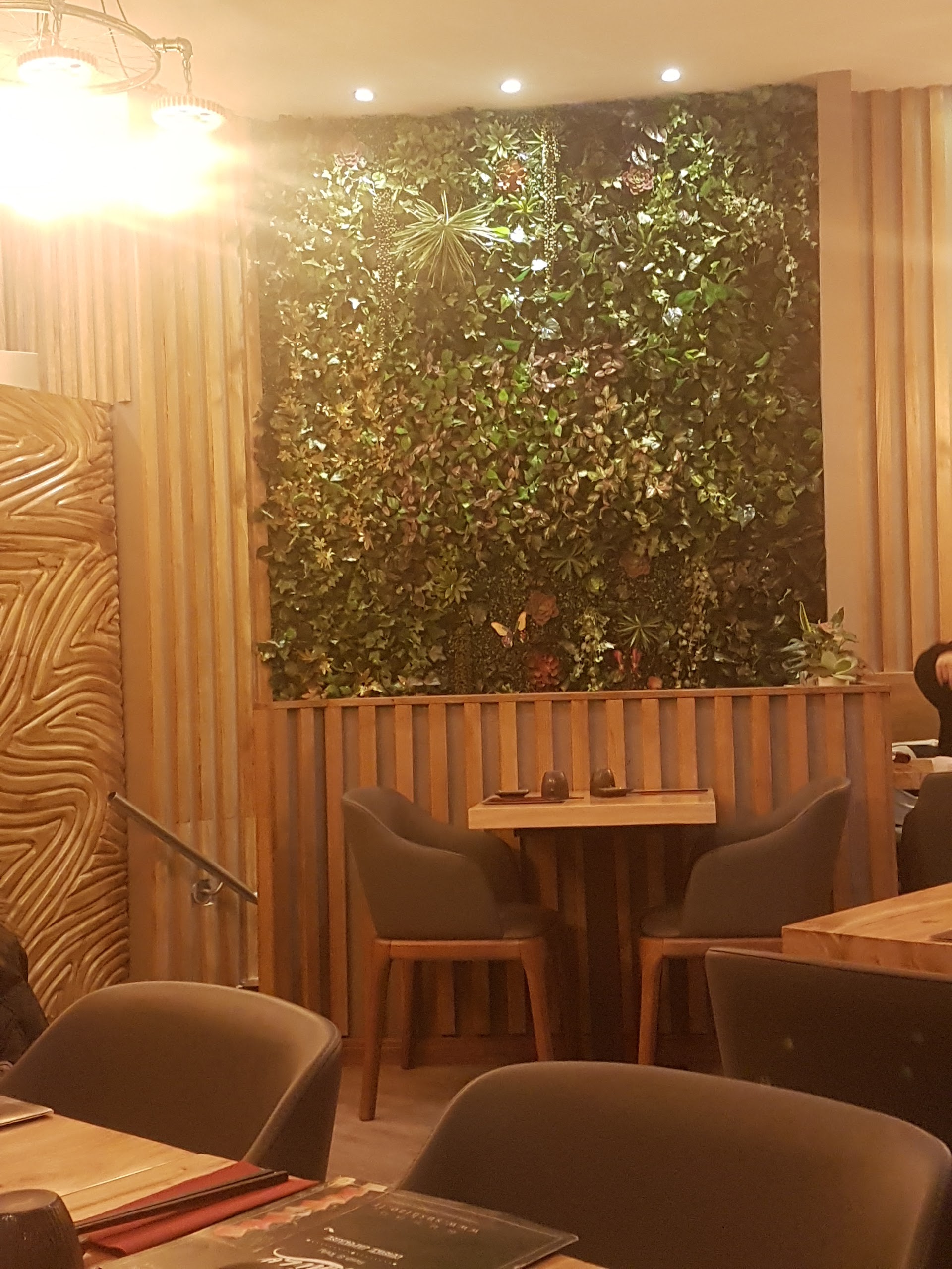 Les serveurs sont très serviables et arrangeants. Les produits sont frais et bons. La déco de la salle du bas est atypique (indus, mur végétal, bois/fer etc..) et jolie. Nous avons beaucoup apprécié les récipients de sauce en terre cuite :)