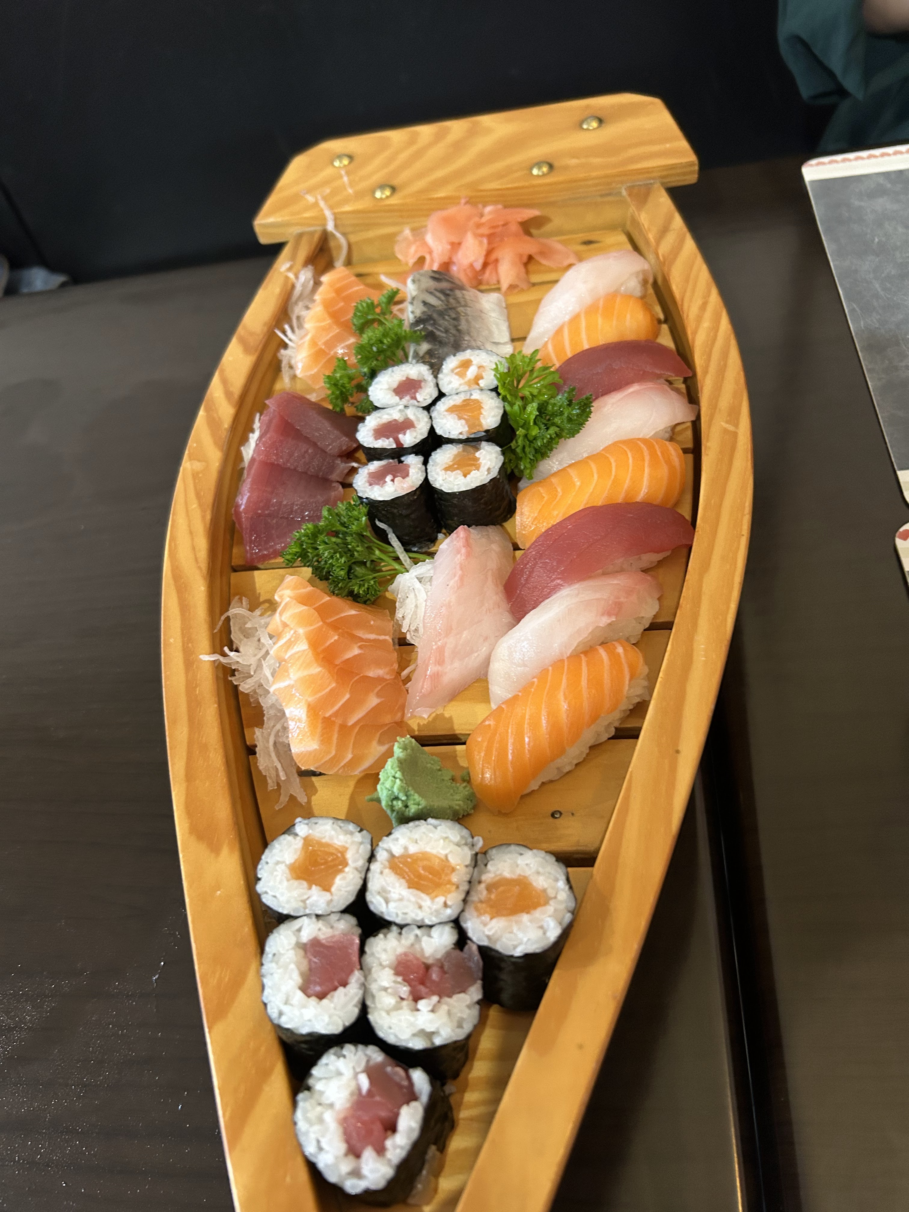 Rien de spécial. Au vue des avis élogieux nous sommes venus dîner. Franchement rien d'exceptionnel, dans la moyenne. Le cadre est pas beau à voir, la porte des toilettes reste ouverte tous le temps. Maki standard, même un peu gras, les nems et brochettes bonnes mais rien de spécial.