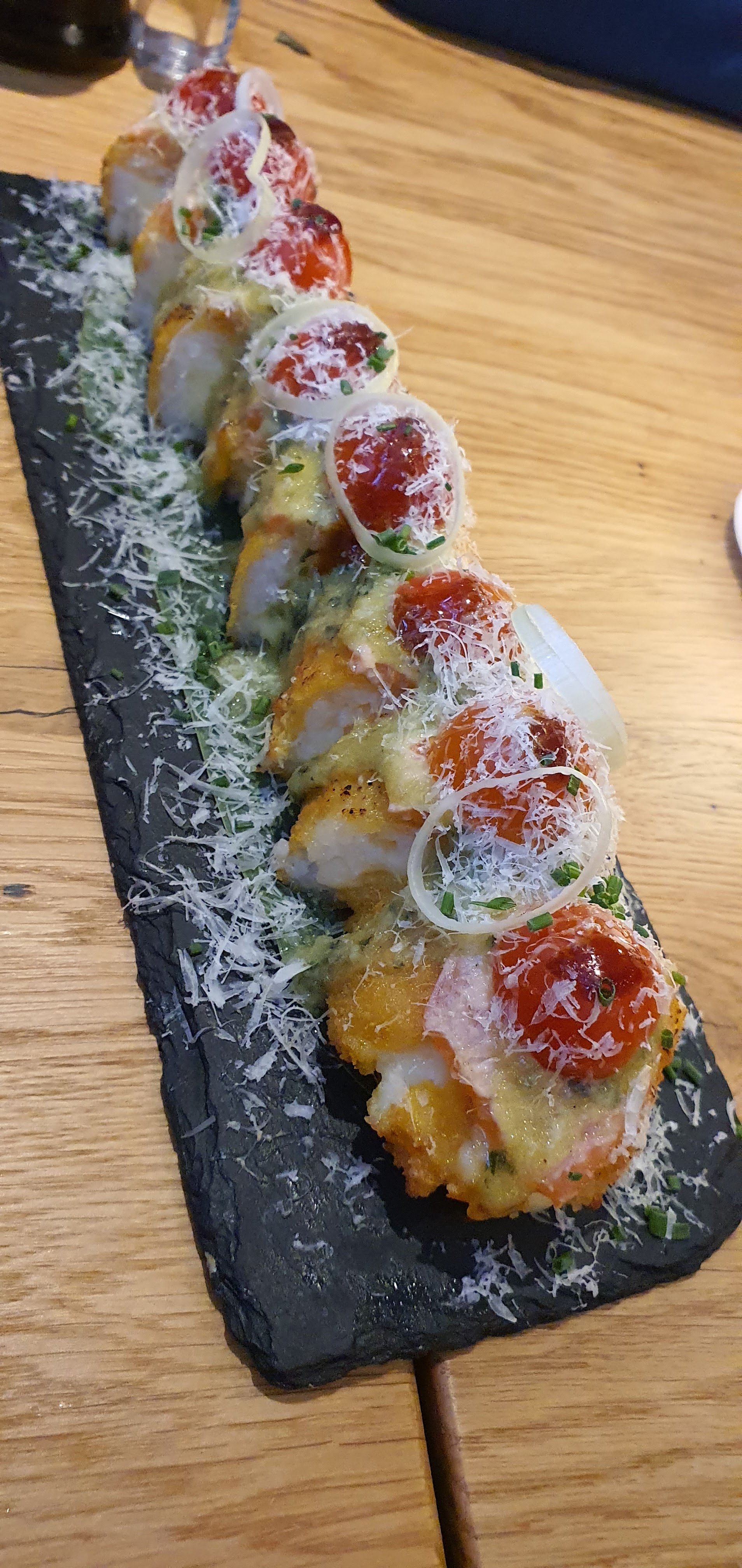 Arrivé en fin de service nous avons eu la chance d’avoir une table pour trois. Les commandes ont vite été prise mais un temps interminable pour la recevoir (30 minutes c’est long quand il reste 4/5 tables et qu’on est en fin de service) Pour ce qui est des sushis ils étaient corrects, rien de bien extravagant mais pas une catastrophe non plus. (Pour ceux que j’avais pris). Les classiques sont maîtrisés mais ne casse pas trois pattes à un canard pour le prix affiché. Le service est quand à lui lamentable, on demande une information a la serveuse qui semble au bout de sa vie « vous savez si sûr la photo de votre nigiri le fromage est de la fêta ? » Réponse : « Ba je sais pas, ils ont du prendre les photos au pif pour la carte » Super le concept de la cuisine fusion mais avoir une explosion en bouche sur les basiques serait super. Et Pitié boostez un peu votre équipe en salle