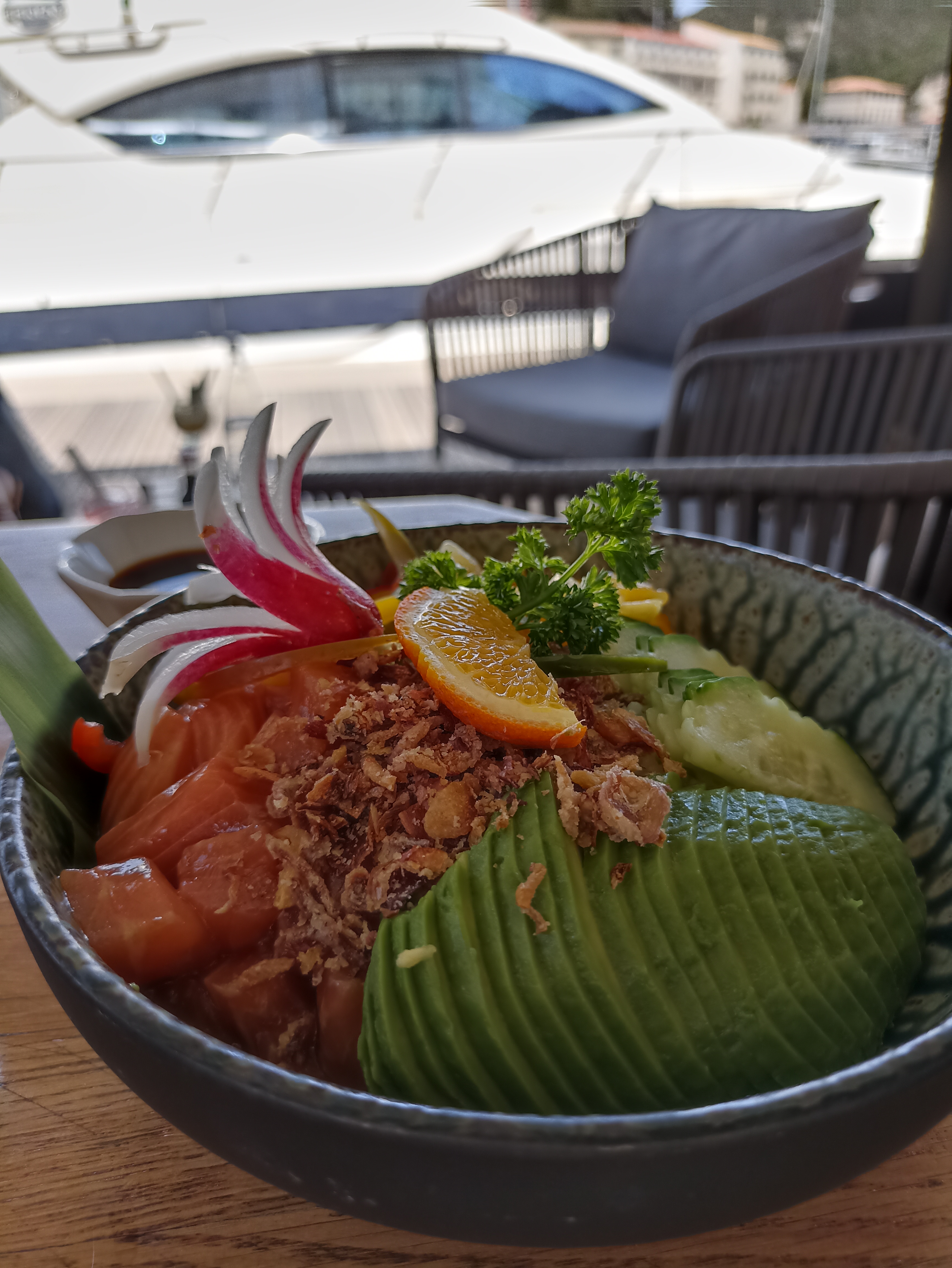 La terrasse est parfaite pour observer les bateaux pendant que vous mangez. Le personnel amical et un poke bowl tueur font de cet endroit une visite incontournable. Vues panoramiques, excellent service et nourriture délicieuse.