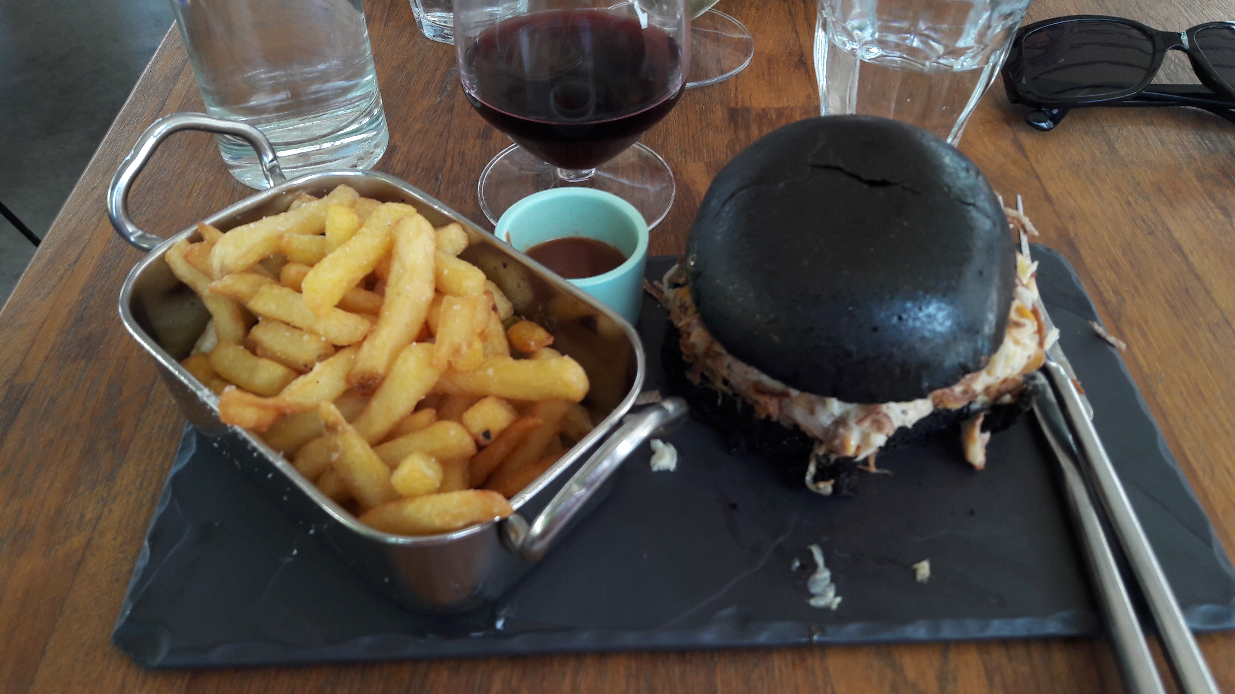 Je vais expliquer ma note en deux temps, l'une pour le repas et l'autre pour le service. Concernant le repas, rien à redire. J'ai pris un pulled pork burger à 17 euros. Le burger était très bon avec son pain à l'encre de seiche. Par contre concernant le service, l'accueil a été cordial et courtois. Cependant, j'ai du attendre mon plat principal pendant environ une heure alors que le restaurant n'était pas plein. C'est la serveuse qui s'est aperçue que je m'impatientais et est allé voir en cuisine. Le pain a également été oublié. Enfin bref, soyez un peu plus attentif dans le suivi des plats car je pense que vous allez perdre des clients.