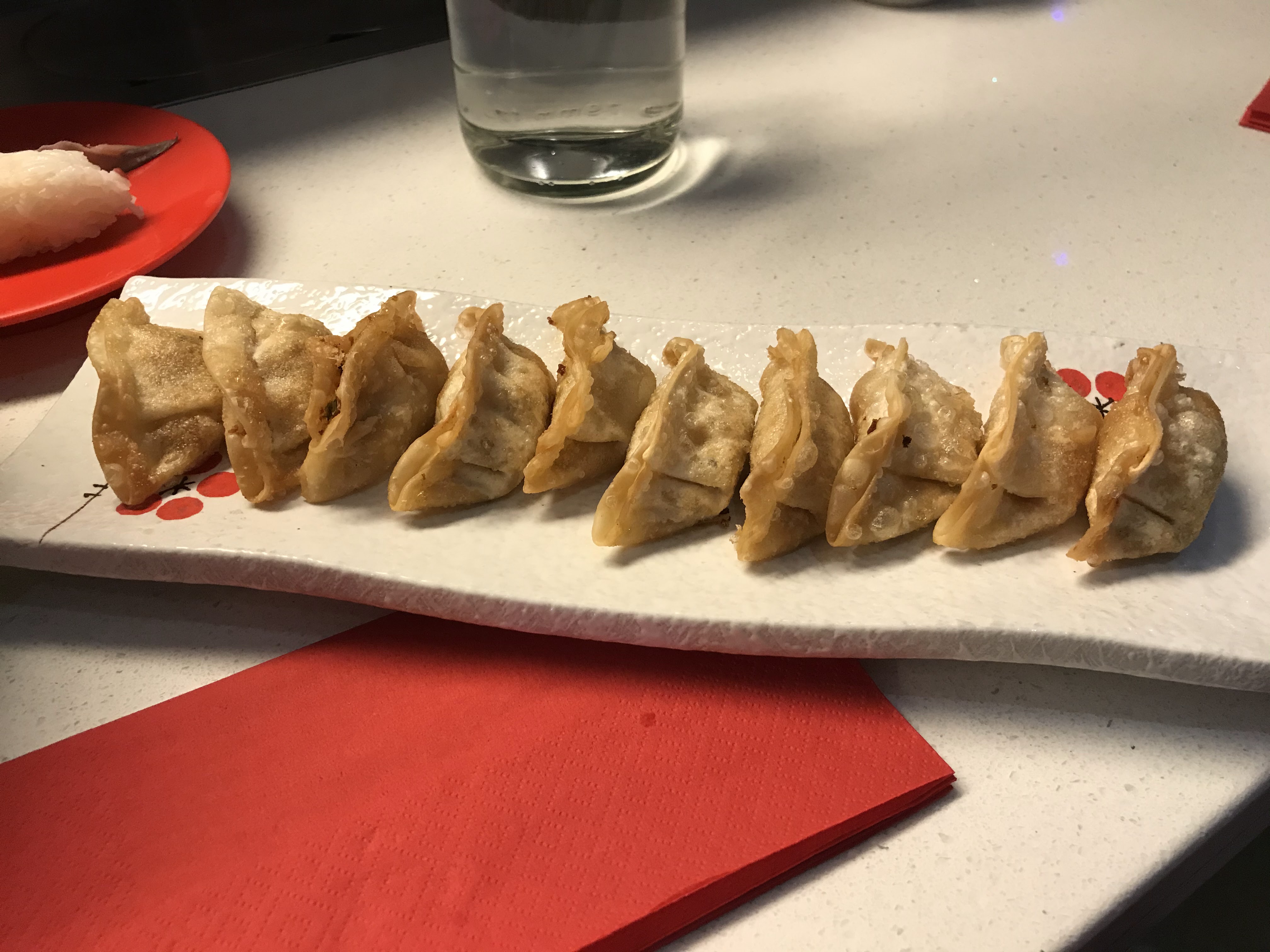 L'accueil est correct, la sauce soja salé est salé et la sauce sucré l'est aussi.. c'est tout ce qui avait du goût par ici.. Le poulet est bon mais trop froid.. les gyoza sont insipide, les sushi frit tout autant.. les sushi, california rolls et maki sont pas fameux du tout.. Le wasabi n'en parlons pas je pense que 35 personnes se sont servi avant moi (oui on a remis l'assiette sur le tapis roulant) La cheffe regardais très mal un de mes amis, c'est pas un ouïghour faut pas insister de la sorte.. Bref pour 25€ le soir c'est vraiment du vol j'aurais du allez en face chez Zap...