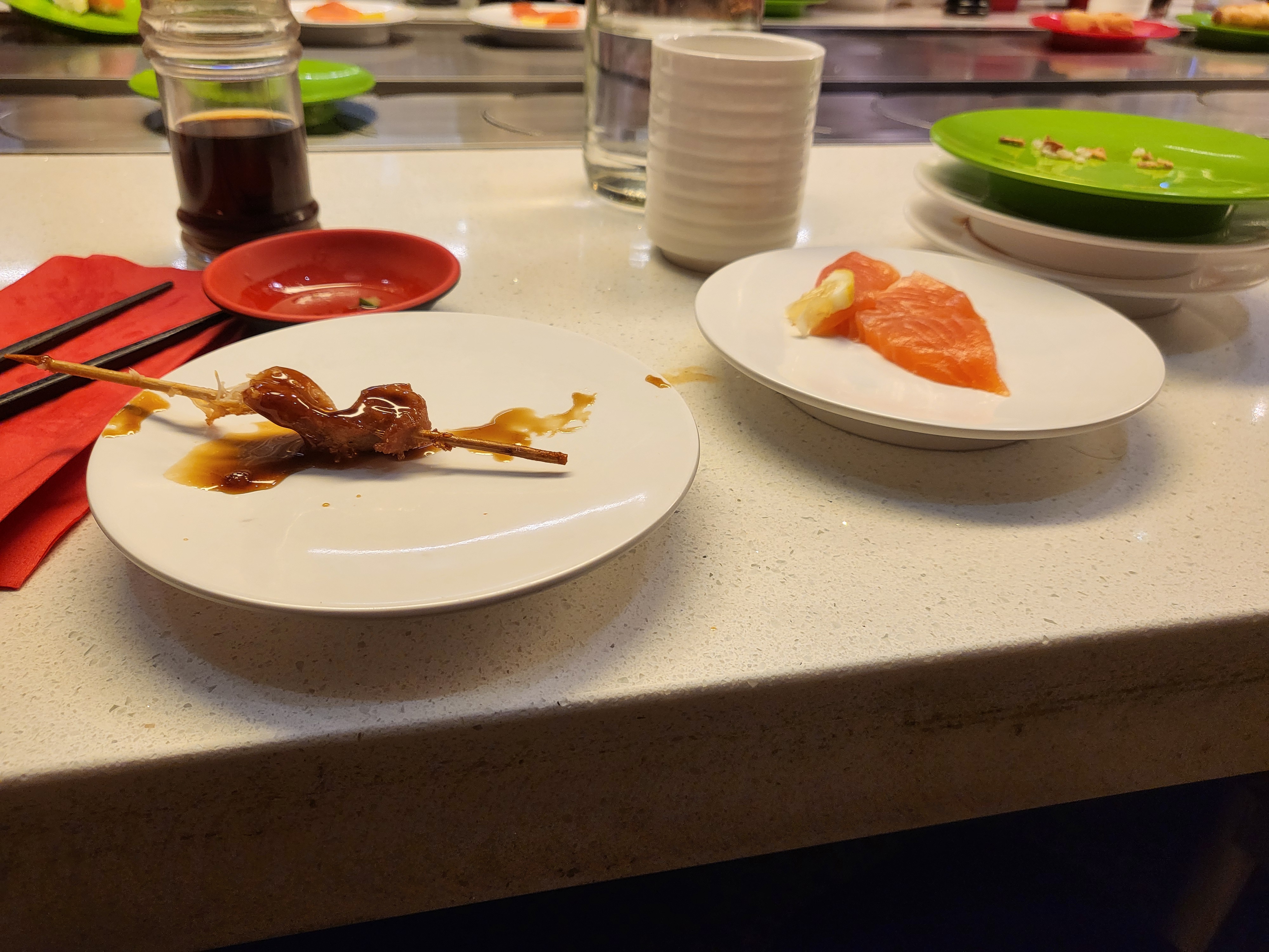 Première fois pour moi dans une sushi avec le tapis tournant, vraiment une très bonne expérience ! L'ambiance est sympa et le prix est correct par rapport à tout ce qui est servit !