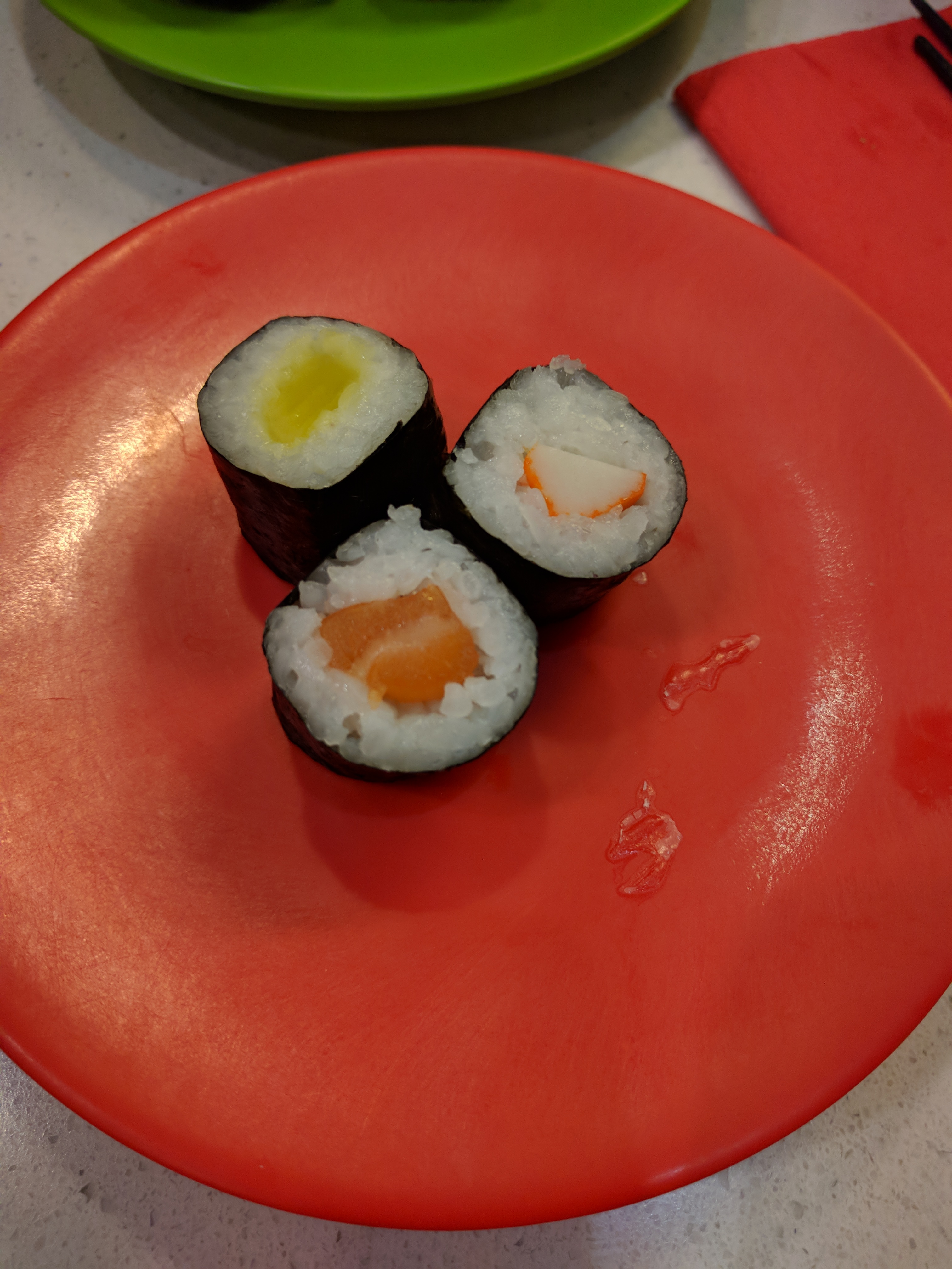 Rien à redire! Sushis excellents ainsi que tout le reste du buffet tournant ! J'ai vu que certaines personnes se plaignent à propos du manque de choix. Cependant je trouve qu'il y a suffisamment de choix et le peu qu'il y a sont de très bonne qualité ! Je recommande!