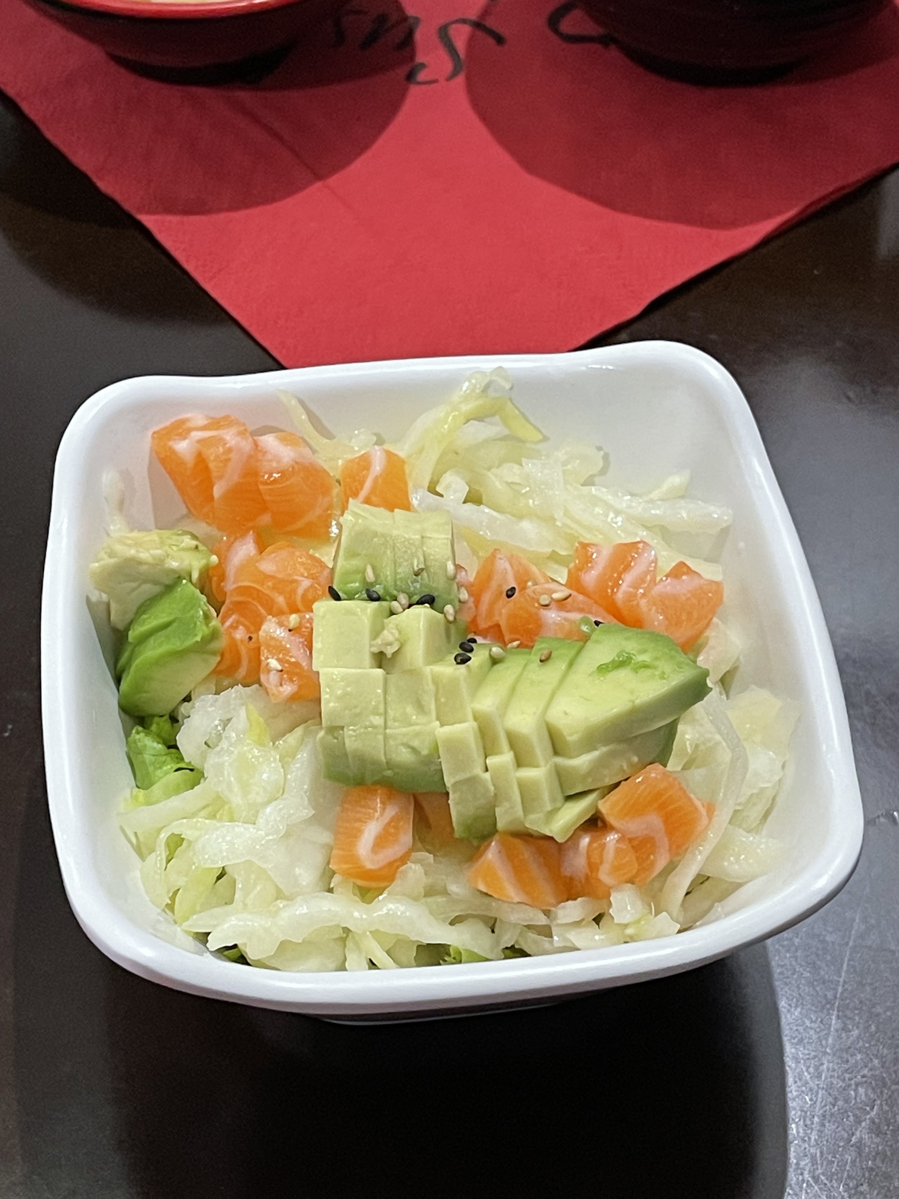 L'épaisseur du sashimi du bol de riz au saumon ne représentait que 50 à 60 % de ce qui était attendu. Le plat de salade inclus dans le menu n'était pas distinctif et avait le goût du chou mariné allemand, pas du style japonais. Mais le prix global est considéré comme abordable à Paris, le prix moyen d'un repas étant de 13 à 18 €.