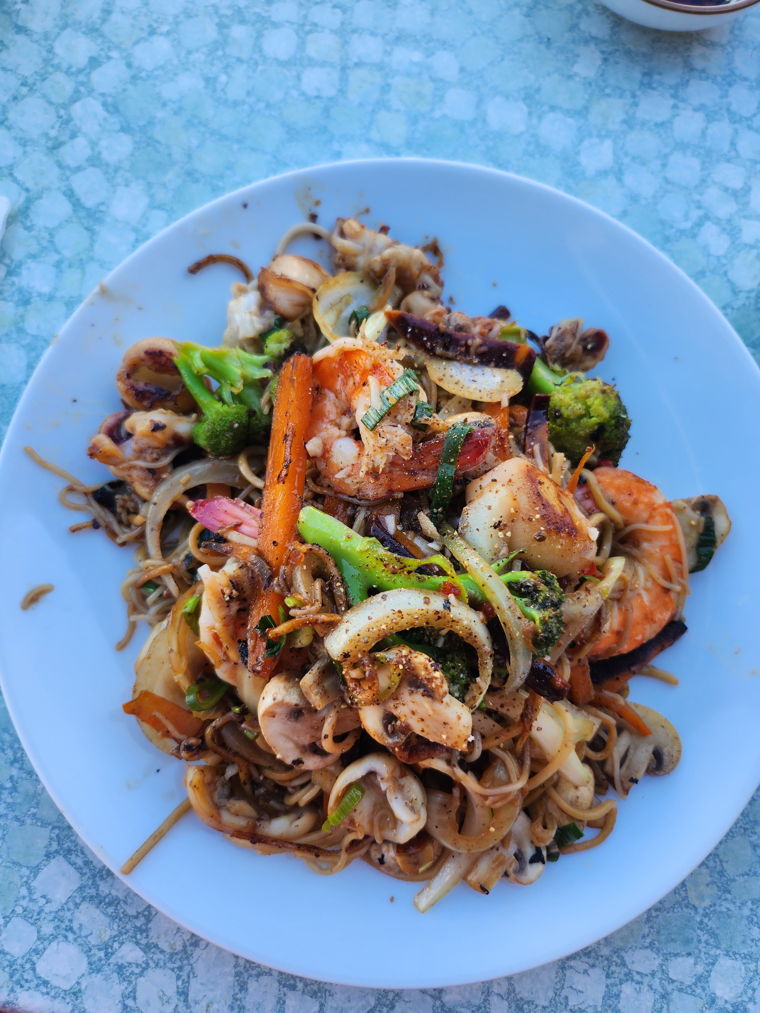 Arrivés par hasard au restaurant, nous sommes reparti ravis et surtout RASSASIÉS 🤰. Les produits sont de très bonne qualité et ont un goût INCROYABLE. Nous avons commencé par une assiette de sushis 🍣 accompagnée d'une bière et d'un DÉLICIEUX thé matcha 🍵. Nous avons continué avec des nouilles sautées aux crevettes et du poulet au soja noir, 2 plats que nous avons aussi ADORÉ. Puis nous avons fini par un petit café plein de saveurs ☕️ Un grand MERCI aux propriétaires pour votre sympathie et votre cuisine faite avec le cœur ❤️