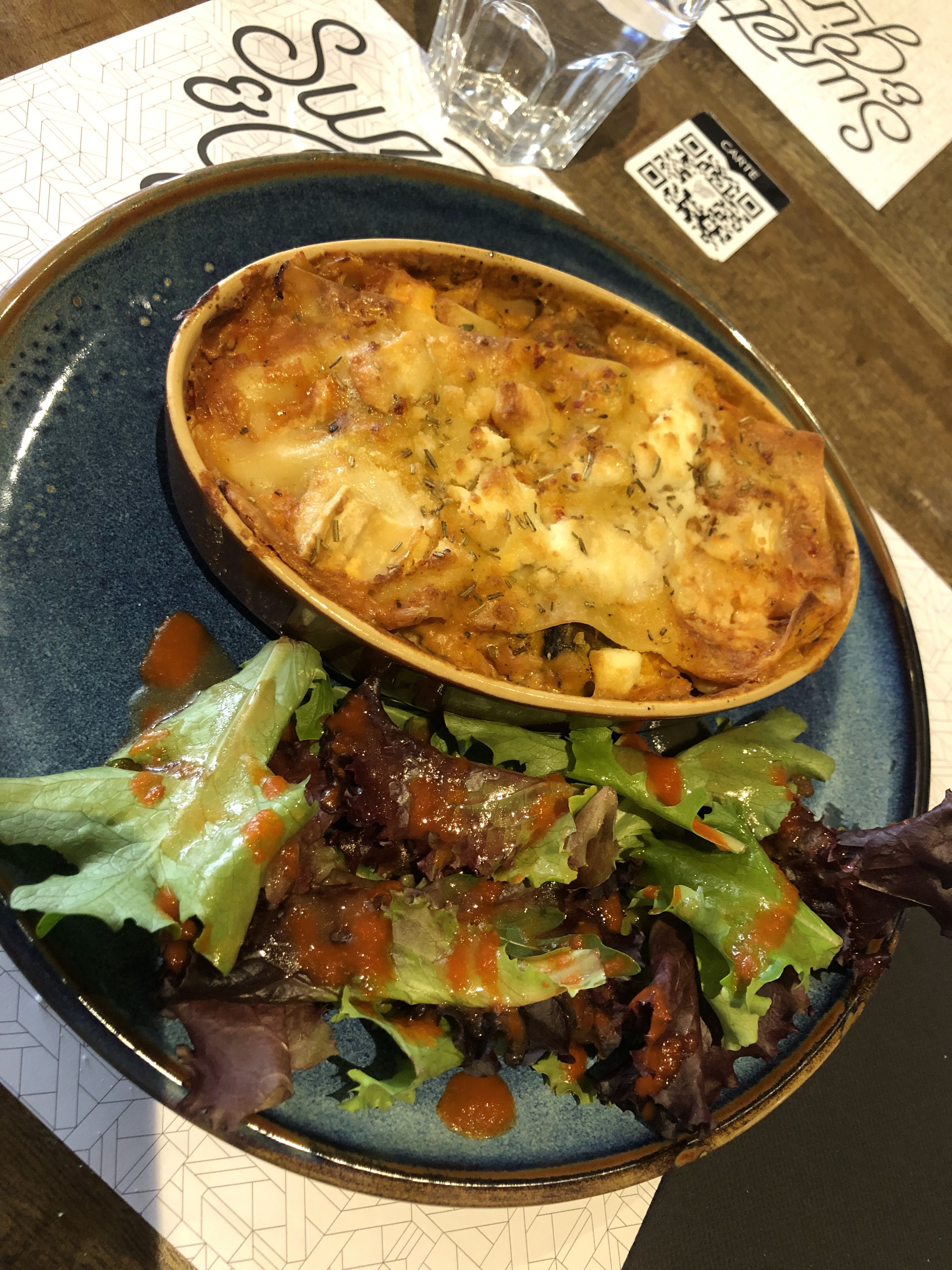 Ambiance très sympa, bonne cuisine, mais dommage qu’on soit arrivés les derniers … plus de jolis verres à vin