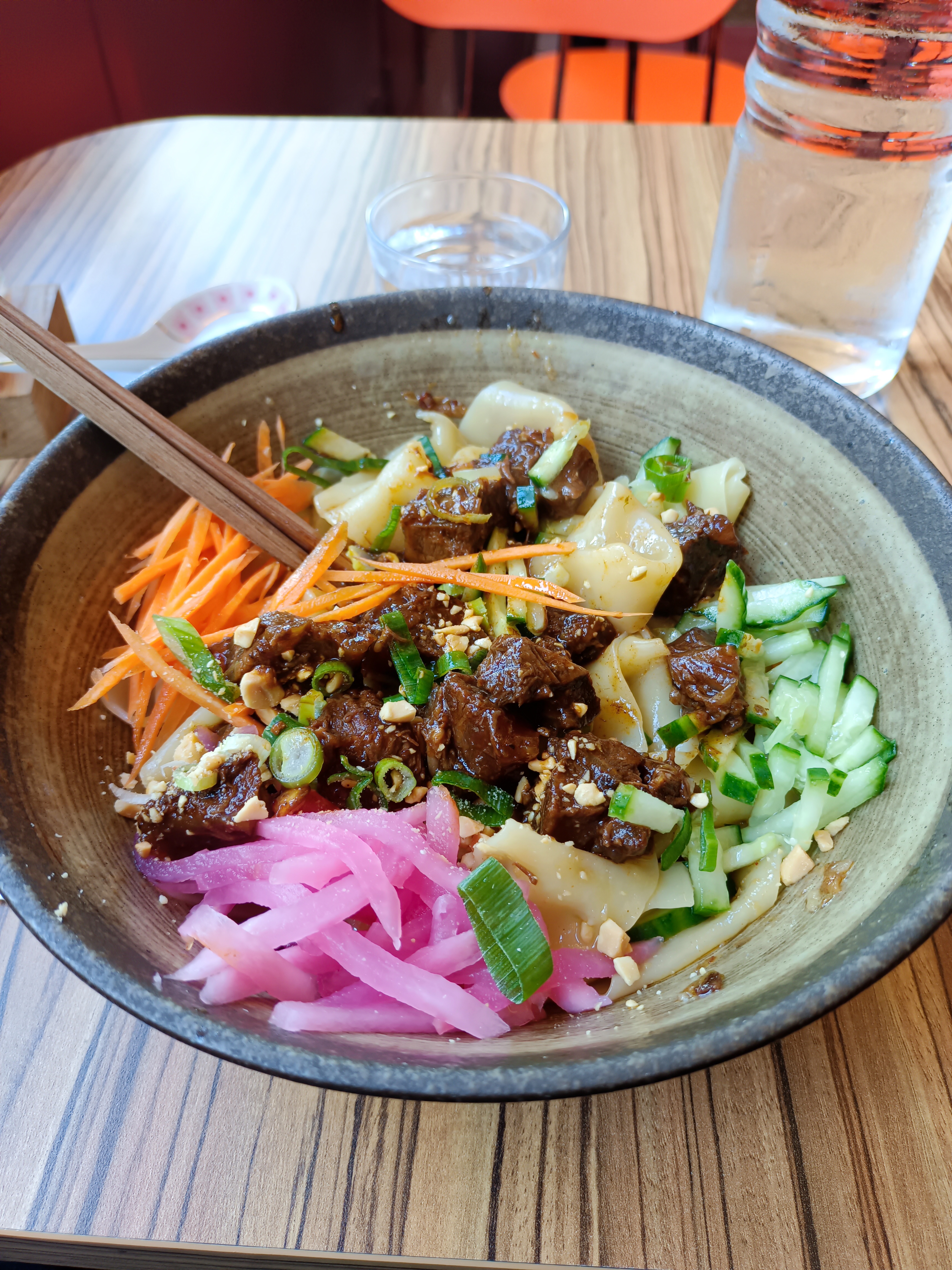 Excellent restaurant, service efficace, beaucoup de saveur dans les nouilles biang biang, excellente salade de tofu pimentée et bao délicieux. Ne peux que recommander 😊