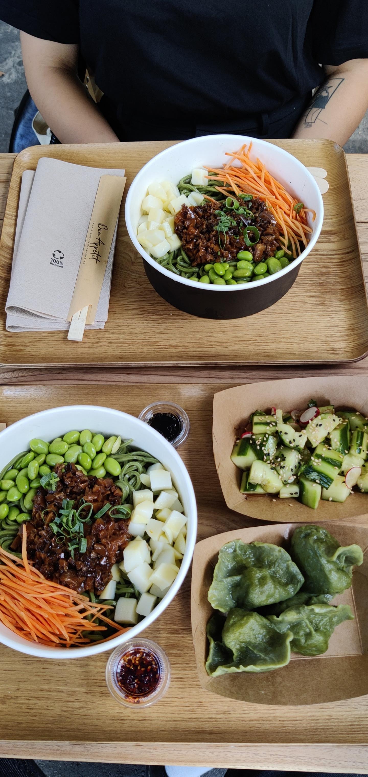 Ils ont des raviolis végétaliens 🥟 et des nouilles 🍜 et ils ont un goût absolument délicieux. A essayer absolument si vous venez au Centre Pompidou.