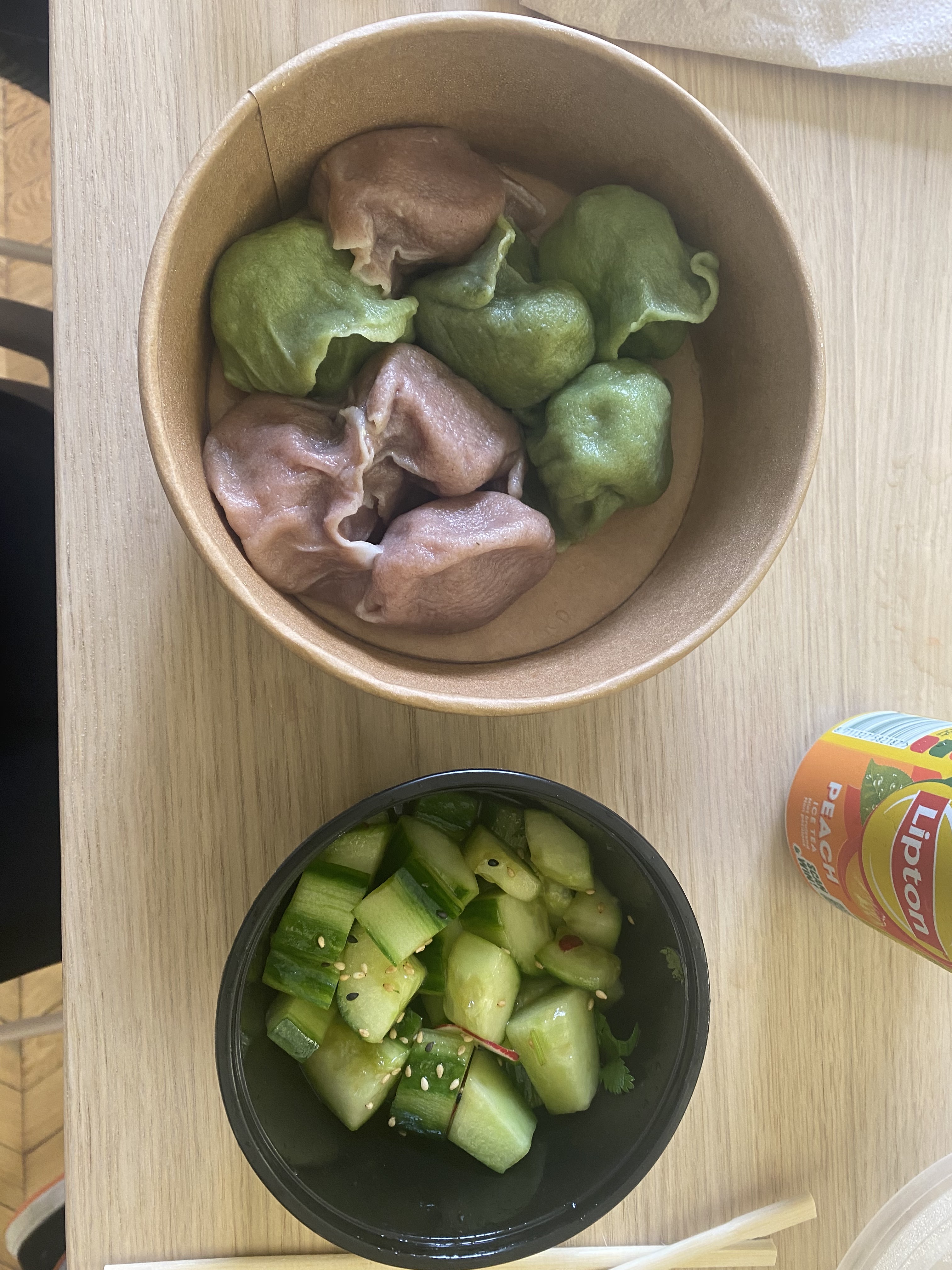 Belle découverte de ce petit shop de raviolis chinois. Ils sont EXCELLENTS et très bien garnis. La salade de concombre est plus quelconque mais on y va pas pour ça. Je recommande vivement !