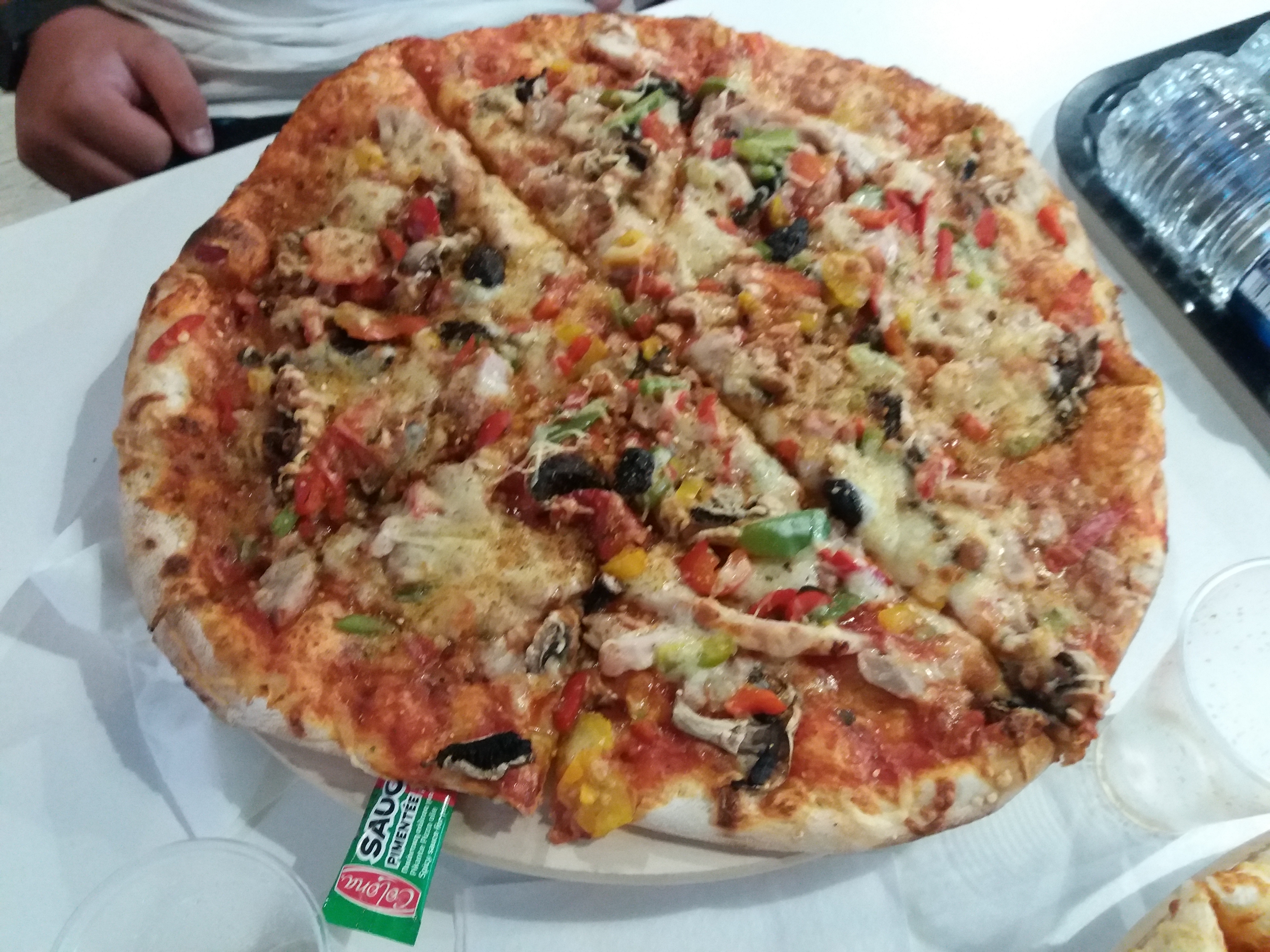 Hamburger pas mal du tout. Pizza chorizo un peu trop salé