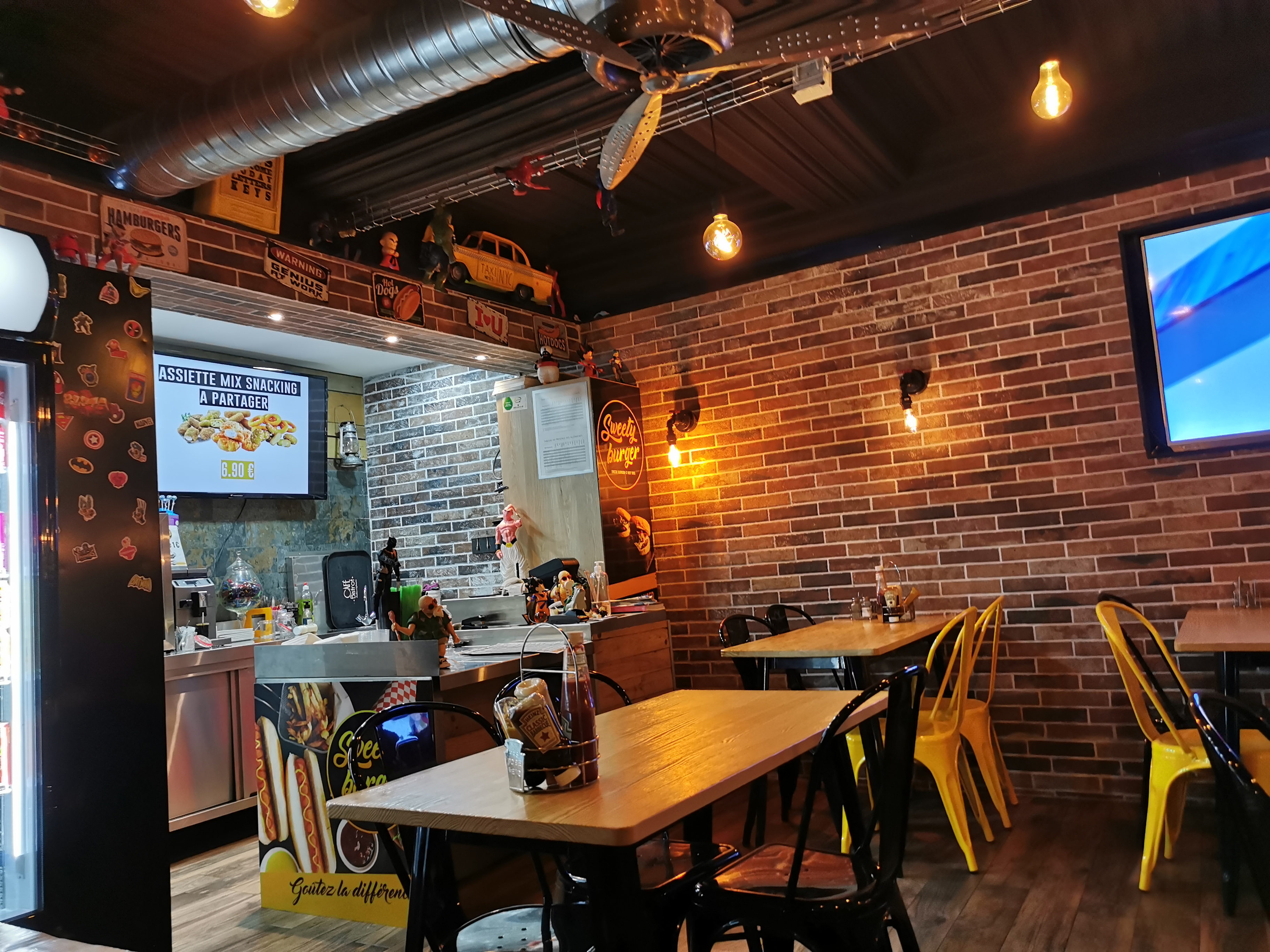 Belle découverte. Super déco. Et la terrasse fait son effet. Personnel très agréable et accueillant. Aucune concurrence pour vous, vos burgers et hotdogs sont de loin les meilleurs. A bientôt l'équipe du sweety burger.