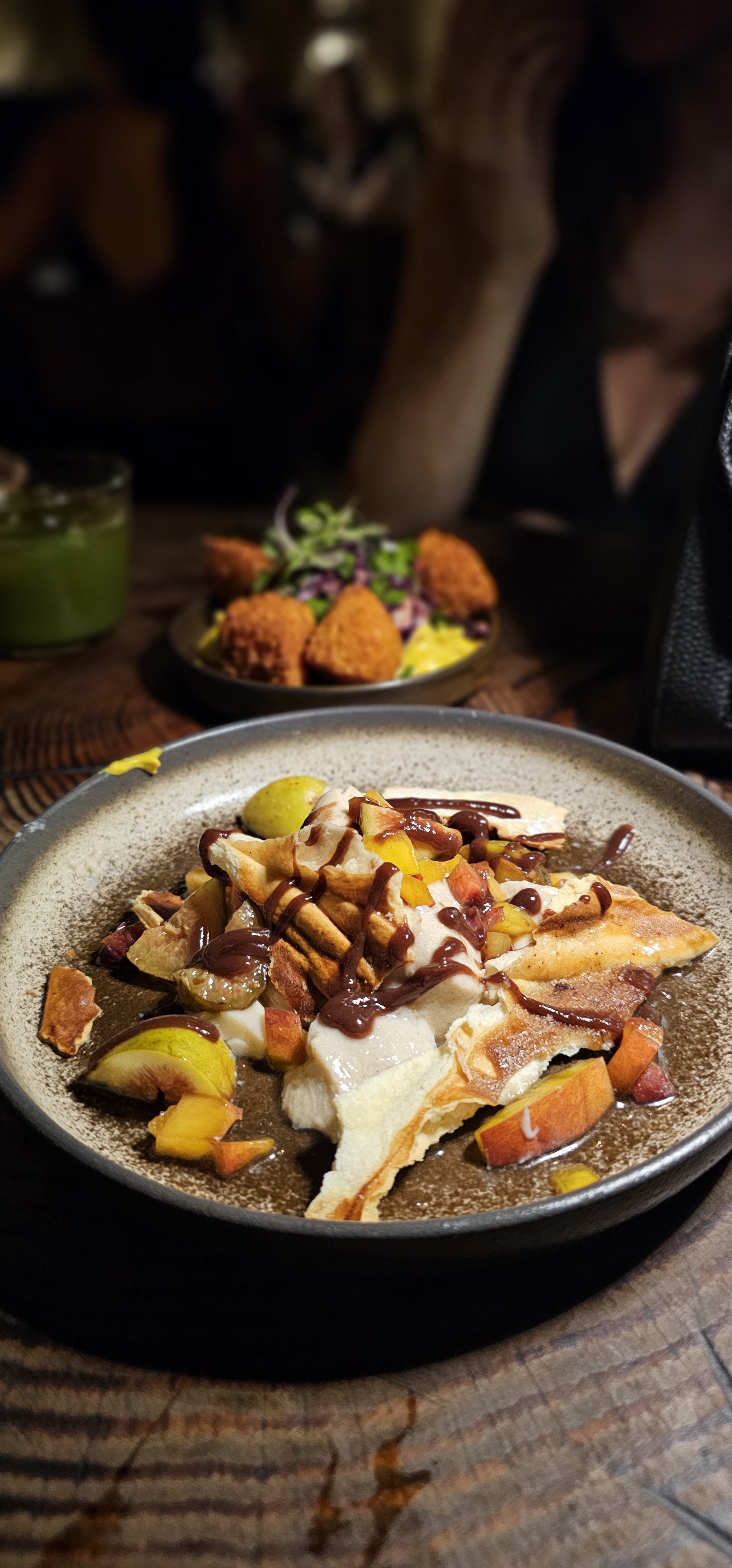 Cocktails très bons et originaux. Les cromesquis de tapioca-cheddar étaient un vrai délice. Un peu moins conquise par les plats choisis. Concernant les poireaux grillés au bintoshan nous avons eu du mal à ressentir la truffe fraîche et les choux de Bruxelles. Les gambas aux agrumes étaient légèrement trop cuites mais le mélange de saveurs était là. En dessert nous avons choisi la tarte chocolat-whisky qui était bonne et la brioche perdue à la marjolaine où le lait d’or ne nous a pas conquis et vient empiéter sur le délice de la brioche. On reste tout de même sur un bon rapport qualité prix en ce qui concerne le sucré. Dans l’ensemble nous avons passé une très bonne soirée dans un cadre agréable avec une équipe attentionnée et efficace. Nul doute que je reviendrai pour me faire un second avis sur la carte à manger.