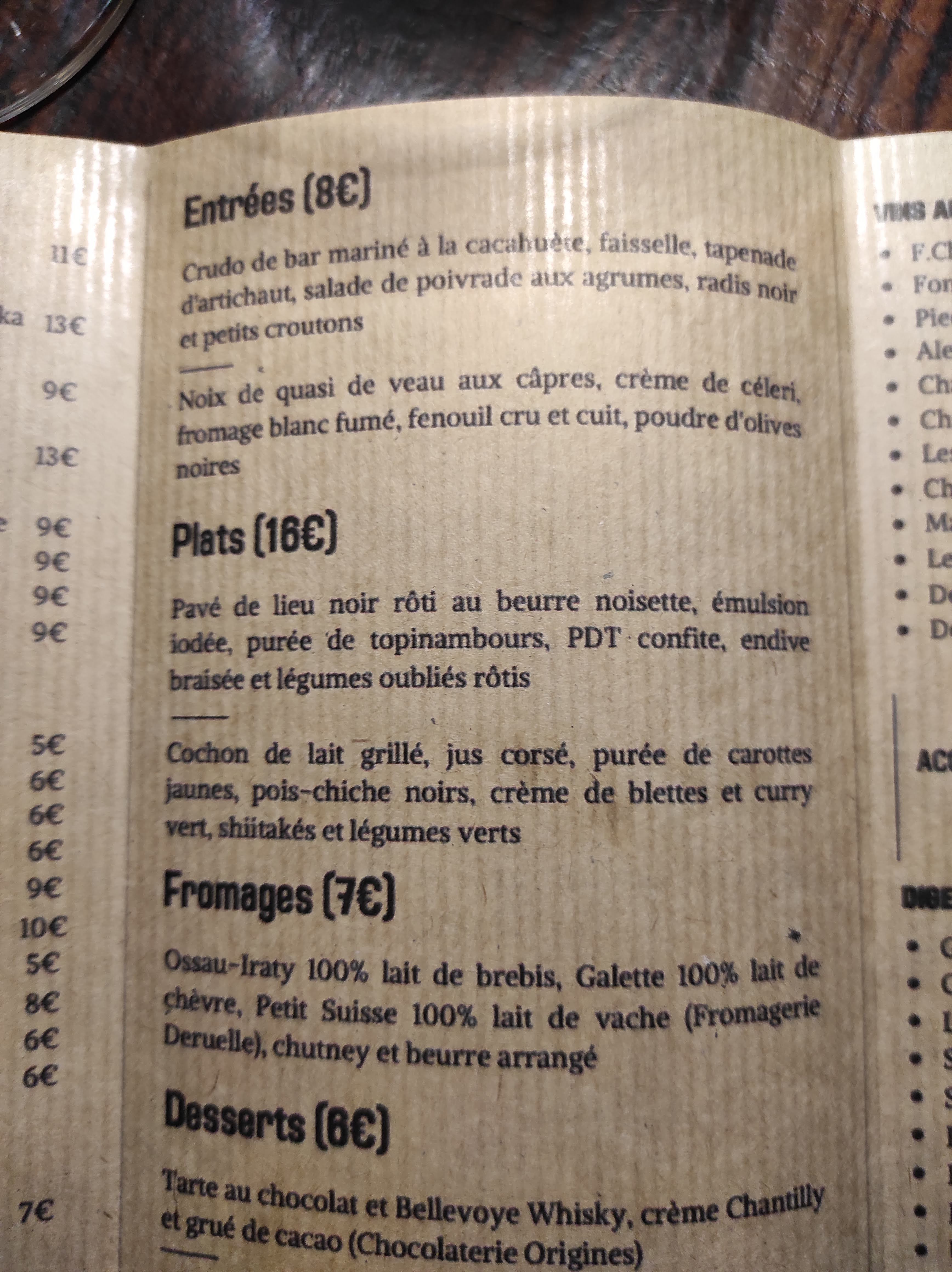Cuisine simple et très bonne, accueil au top avec présentation des plats on se croirait dans un restaurant gastronomique. Très bin rapport qualité prix. Entrée, plat , dessert pour 20€ je recommande fortement !
