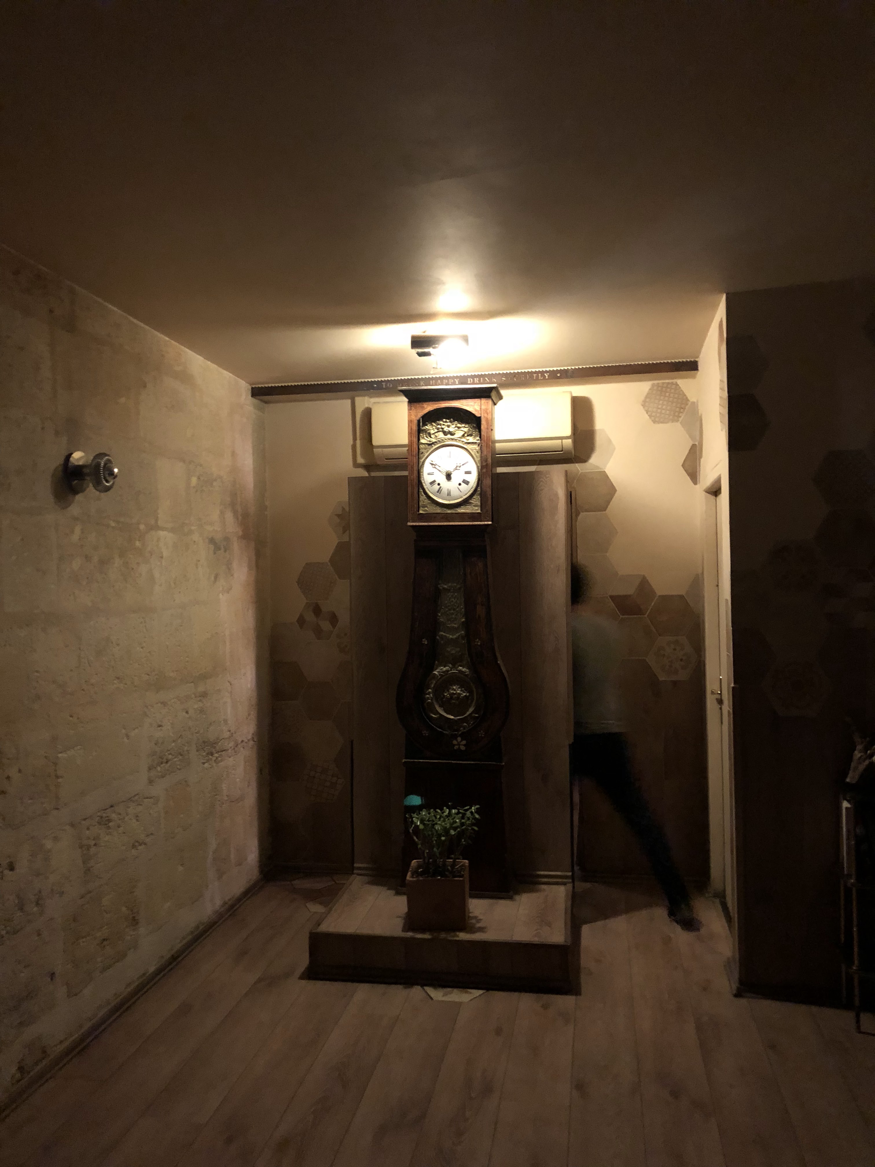 À l’entrée on a l’impression qu’il n’y a personne que c’est vide, mais tout est caché derrière la pendule, c’est sombre et une déco de grotte plutôt cool, c’est la deuxième fois que je viens ici pour boire un cocktail. Ils sont excellents !!