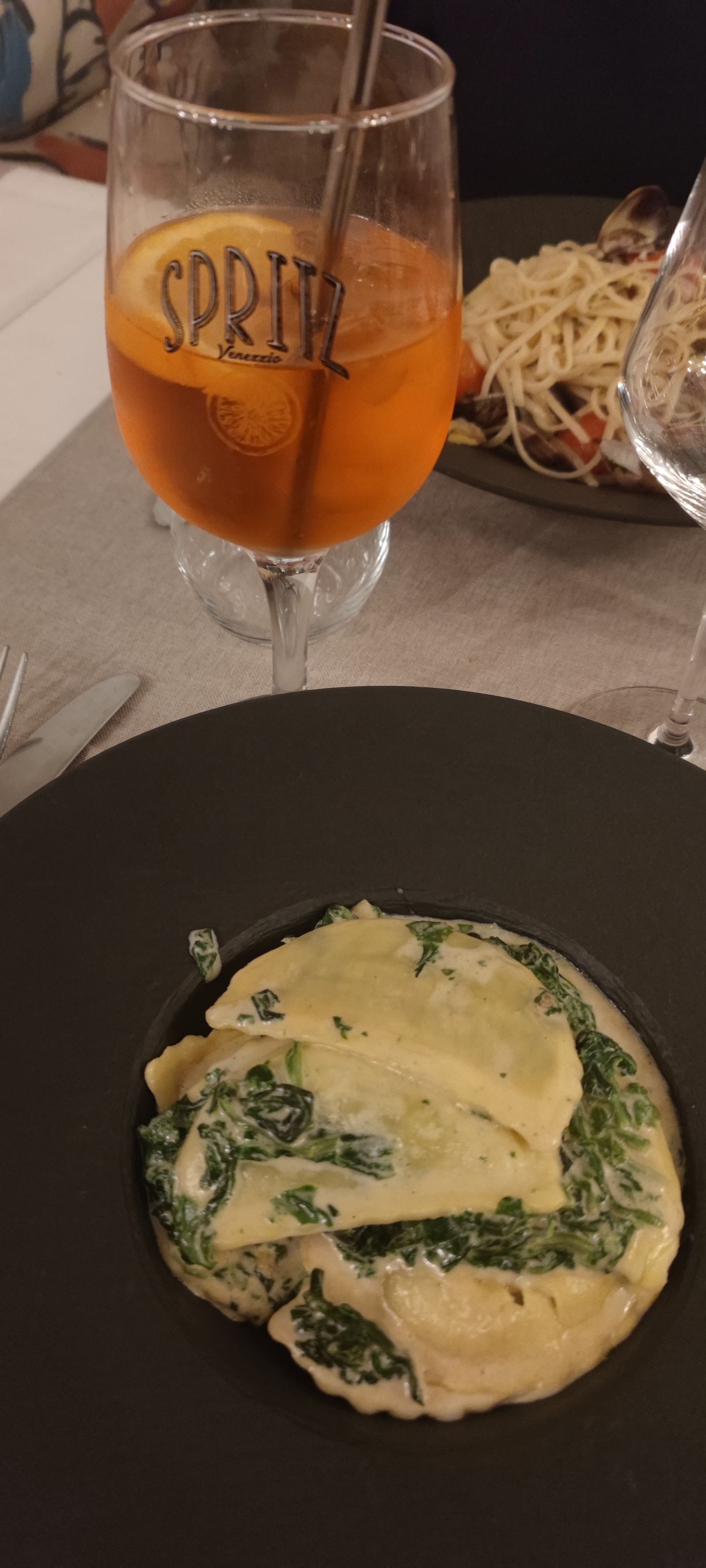 La cuisine n’est pas italienne, antipasti de légumes sans saveurs, charcuterie de qualité moyenne, pain industriel et même un morceau de beurre à la place de l’huile d’olive. Pensez peut-être à ouvrir un restaurant normand ? Point positif, le vin était bon (Piluna, Castello Monaci).