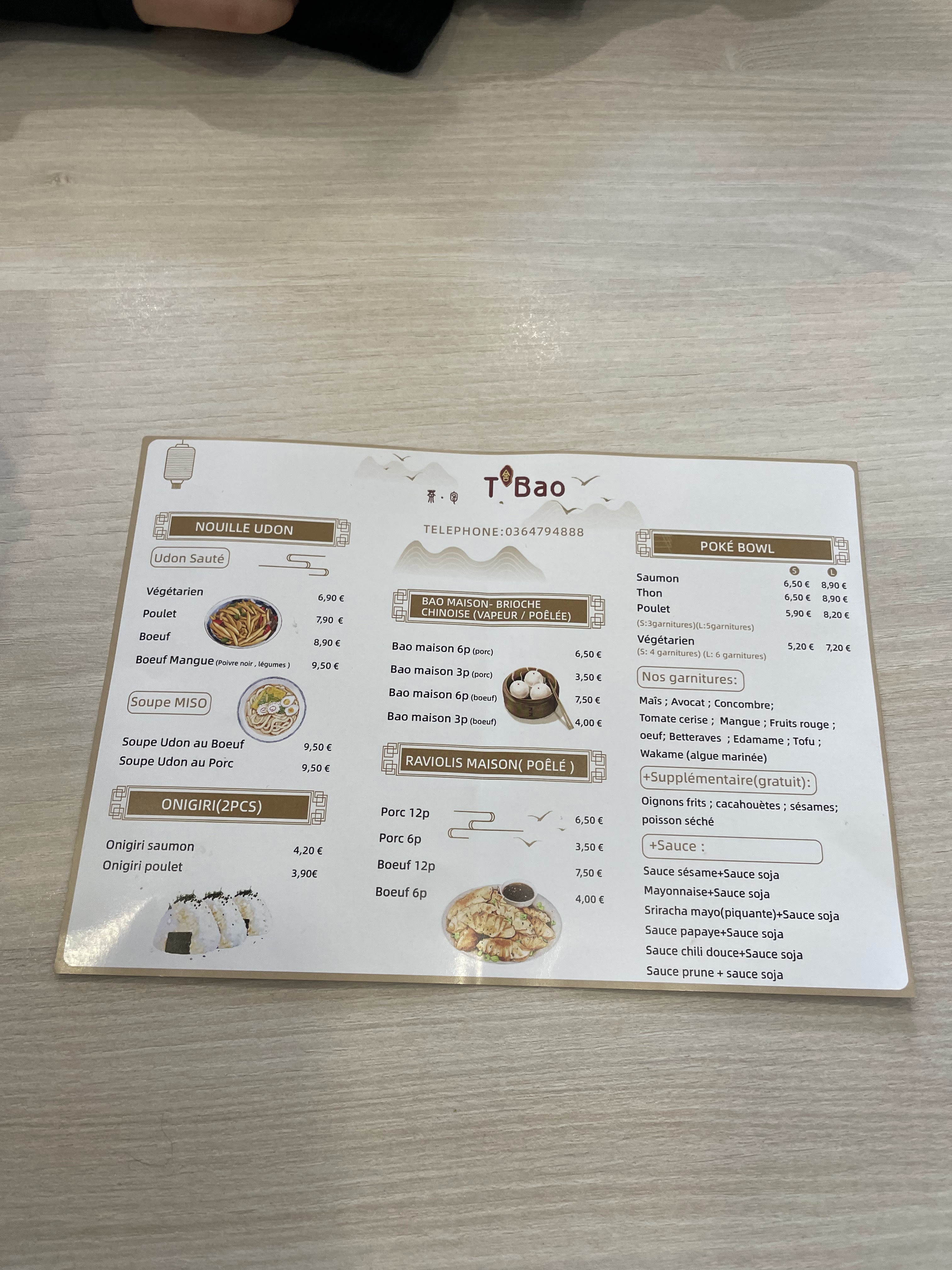 Excellent ! Si vous êtes amateur de jiǎozi, de Uddon, de bao, de poké Bowl ou encore de Bubble Tea, foncez sans hésiter ! Des produits frais, une quantité très satisfaisante, et un personnel chaleureux ! Vous venez de gagner un client fidèle !