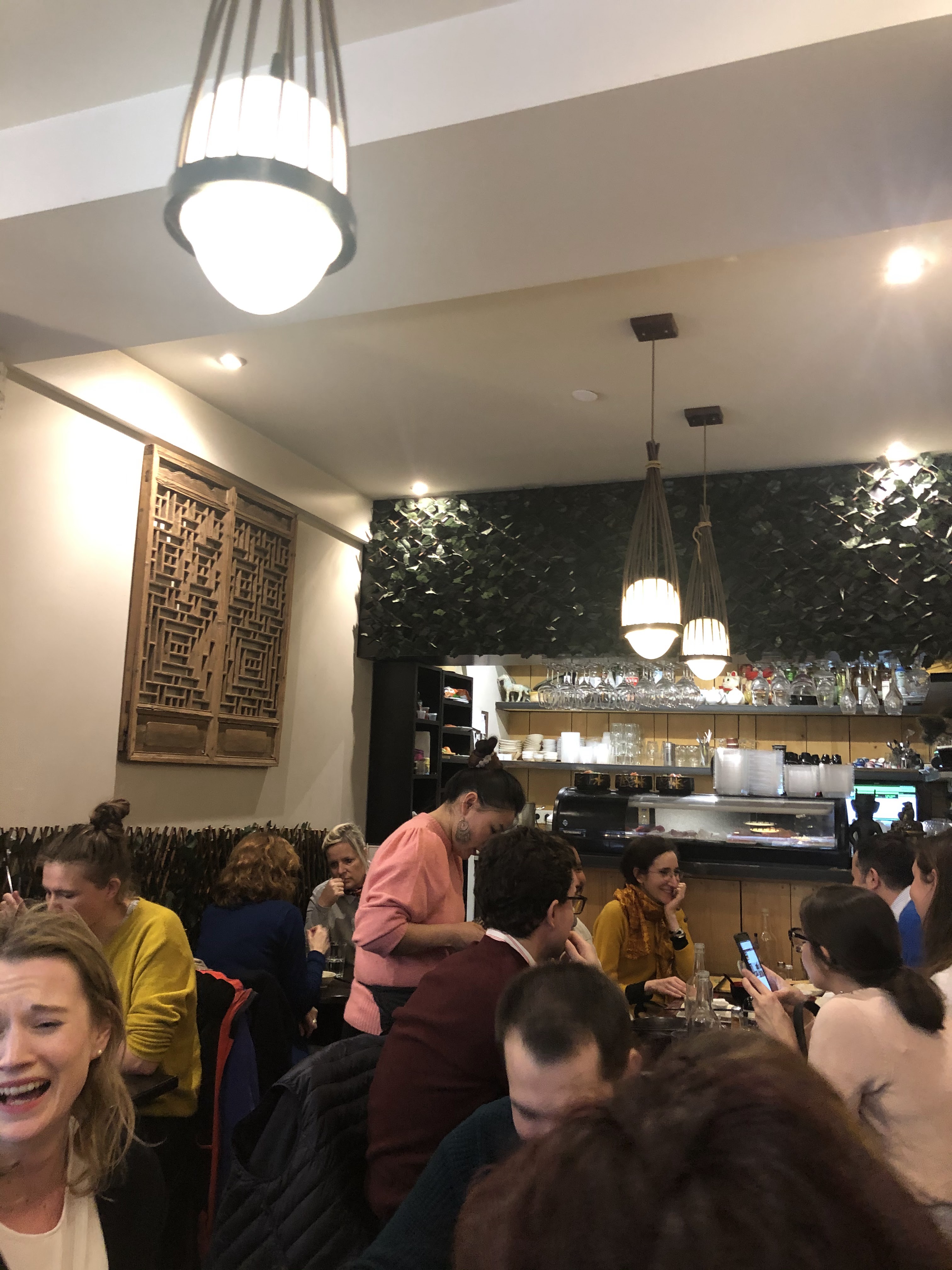 Tout parfait! Lieu cosy et chaleureux, bien décoré, musique actuelle sympa, accueil impeccable et souriant, service rapide, très bon sashimis saumon, gyozas, brochettes ! Petit bémol pour les desserts, bons sans plus! Bonne adresse à garder!!